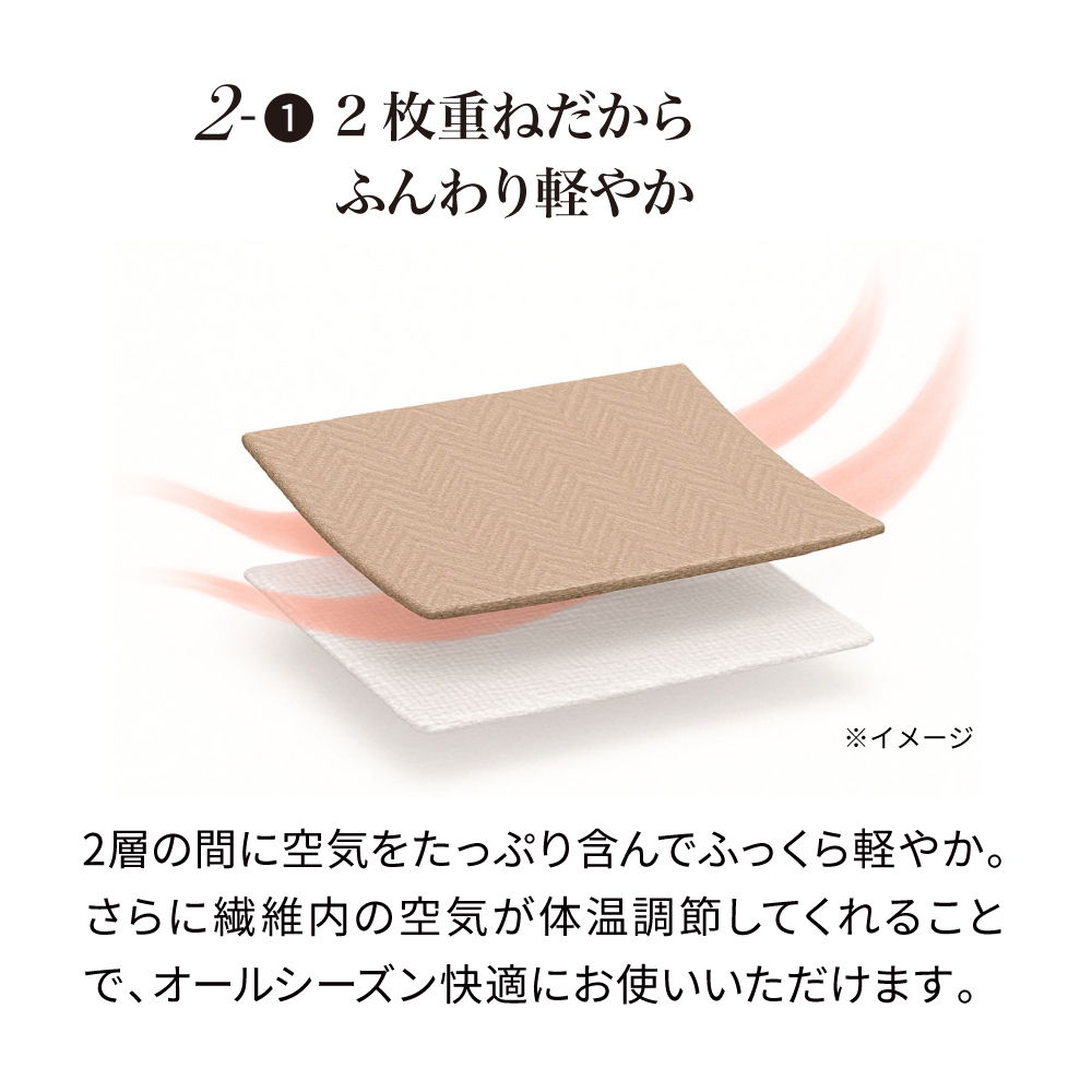 昔ながらの和ざらし製法でとびきりリッチな風合いを実現したボックスシーツです。上質な糸でしっかり織り上げた丈夫な二重ガーゼ生地は、洗うほどほんのり起毛しながらやわらかく育ちます。寒い時期もひんやりしにくく、マットレスや敷布団の使い心地をアップしてくれます。ゆっくりと風合いを育てたい、和ざらし二重ガーゼのボックスシーツ布団にくるまる時、その感触はとても大切。「和ざらし二重ガーゼのボックスシーツ」の素材は、昔ながらの製法で仕上げた綿100%の二重ガーゼ。使えば使うほど、洗えば洗うほど、ほんのりと起毛しながら、ぬくもりのある風合いに育っていき、心まで満たされるやさしい使い心地になっていきます。使い始めからやわらかな和ざらし製法私たちが目指したのは、届いた時から気持ちよく使えるボックスシーツ。そこで選んだのが「和ざらし製法」です。時間をかけてじっくりと綿の不純物を除去していくこの方法なら、生地に負担をかけずに上質な風合いに仕立てることができるのです。ヘリンボーン織りのやわらかくしっかりとした二重ガーゼにしたてました。江戸時代から受け継がれる伝統の技「和ざらし」という言葉をご存知ですか?繊維にストレスを与えないよう、ゆっくり時間をかけて油分や不純物を取り除く伝統の技法。江戸時代から受け継がれてきたこの方法で、ふっくらやわらかな風合いが引き出されます。「和ざらし」と「洋ざらし」の違い 「さらし」とは、天然綿花が持っている脂質や不純物などを除去し、繊維の色素やにおいを取り除く工程のこと。この和ざらしされた二重ガーゼ生地は、創業100年の老舗工場で、手間暇かけて丁寧に加工しています。長い歴史の中で培われた技術が活かされた一枚です。2枚重ねのガーゼがもたらす快適さ二重ガーゼの魅力といえば、やはりその心地よさ。2層の間に空気をたっぷり含んでふっくら軽やか。さらに繊維内の空気が温度調節してくれることで、オールシーズン快適にお使いいただけます。愛着育つ、洗うたびのふっくら上質な綿100%二重ガーゼは、お洗濯のたびに繊維がやわらかくなり、空気を含んでふっくら育ちます。あなただけの風合いが、毎日の眠りをやさしく包み込みます。こだわりの使い心地ぴったりフィット、着脱簡単ボックスシーツ面倒なシーツ交換も、簡単に。全周ゴム仕様だから、マットレスにサッとかぶせるだけでぴったりフィット。たっぷり30cmのマチ幅で、厚手のマットレスにも対応します。ナチュラルかつ高級感のある4カラーをご用意和ざらしガーゼのやわらかさと上質感を引き立てる4カラーからお選びいただけます。和ざらし二重ガーゼのカバーリングは、毎日の眠りをそっと包み込む大切な相棒になってくれるはず。ぜひ長く使って、あなただけの風合いに育ててみてください。