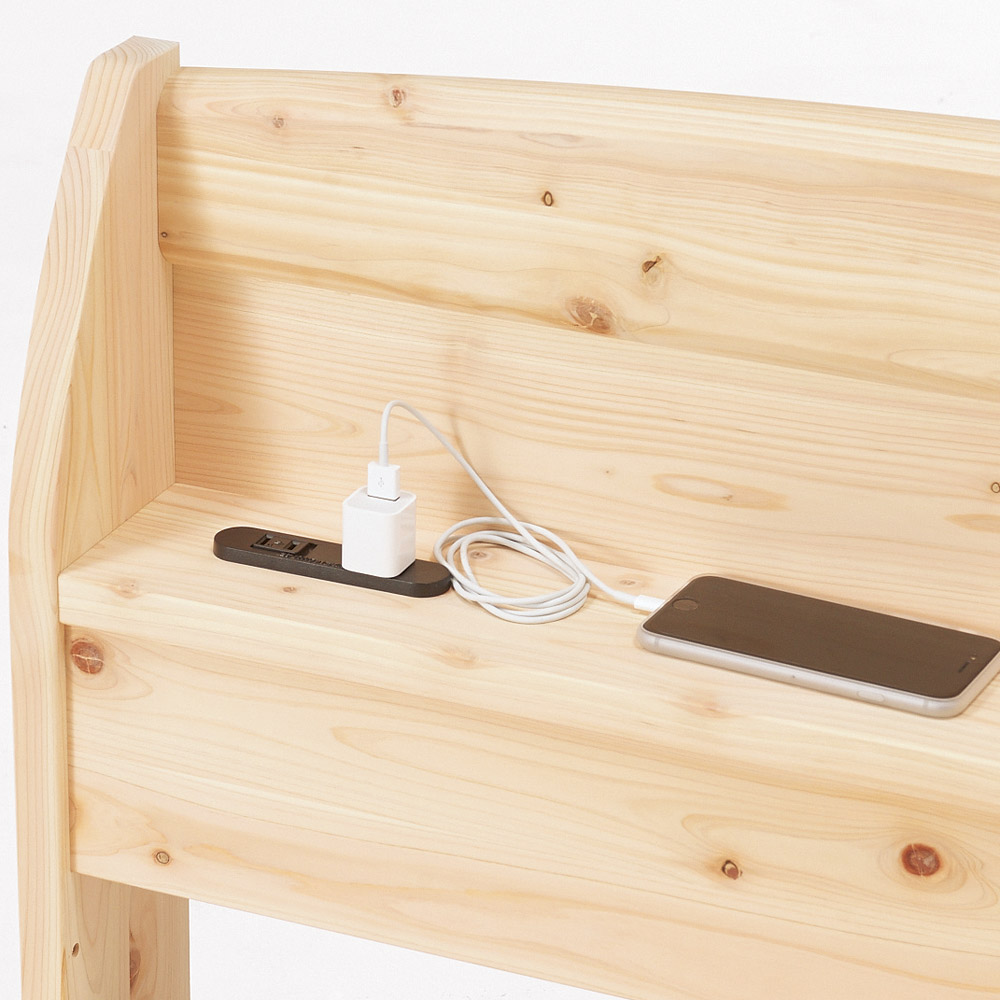 ヘッドボード棚の上に便利な2口コンセント付き。