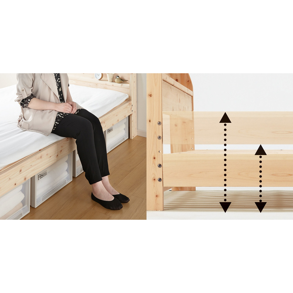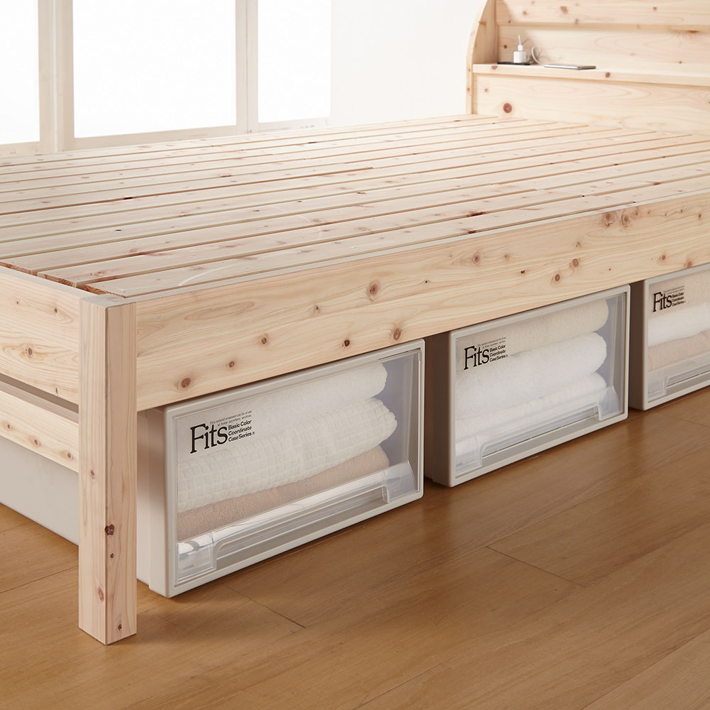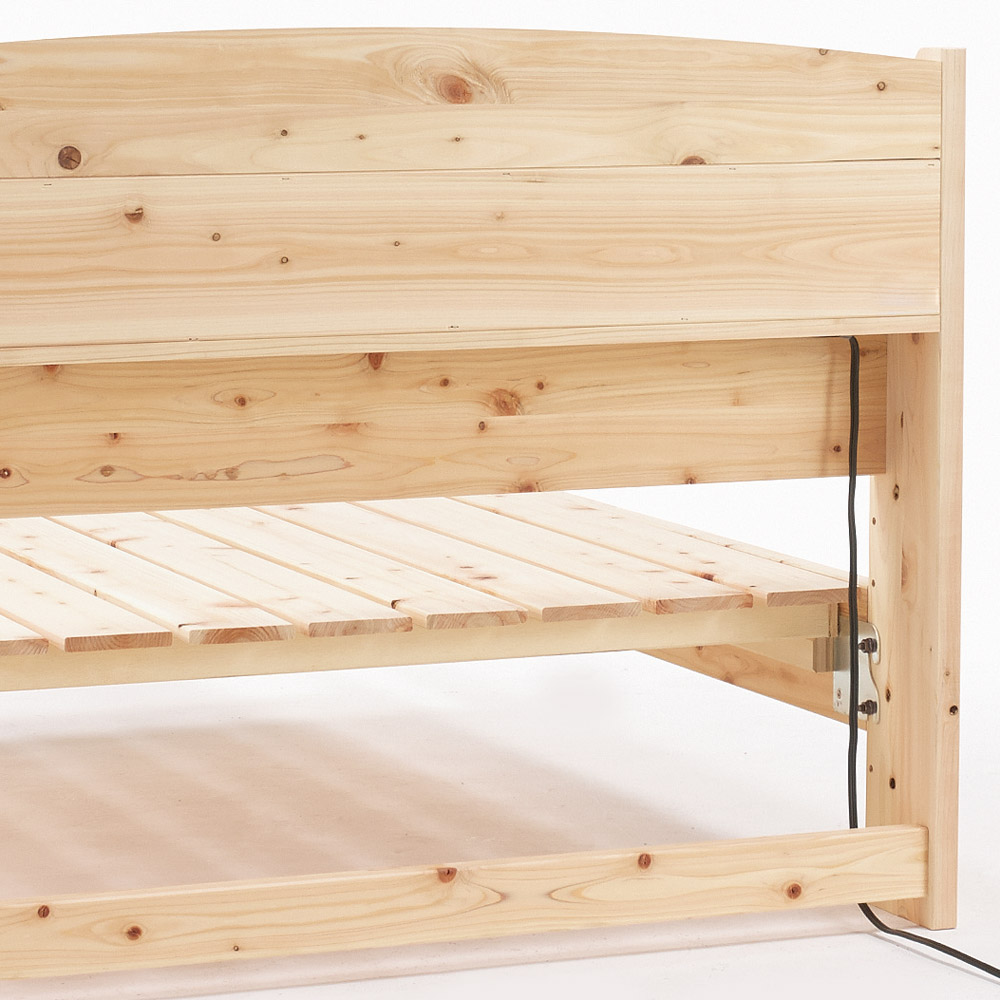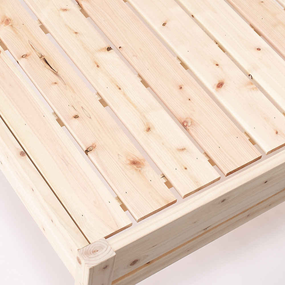 床面には通気性のいいすのこを採用。すのこも国産ひのきを使用しております。 ※写真はダブルサイズです。