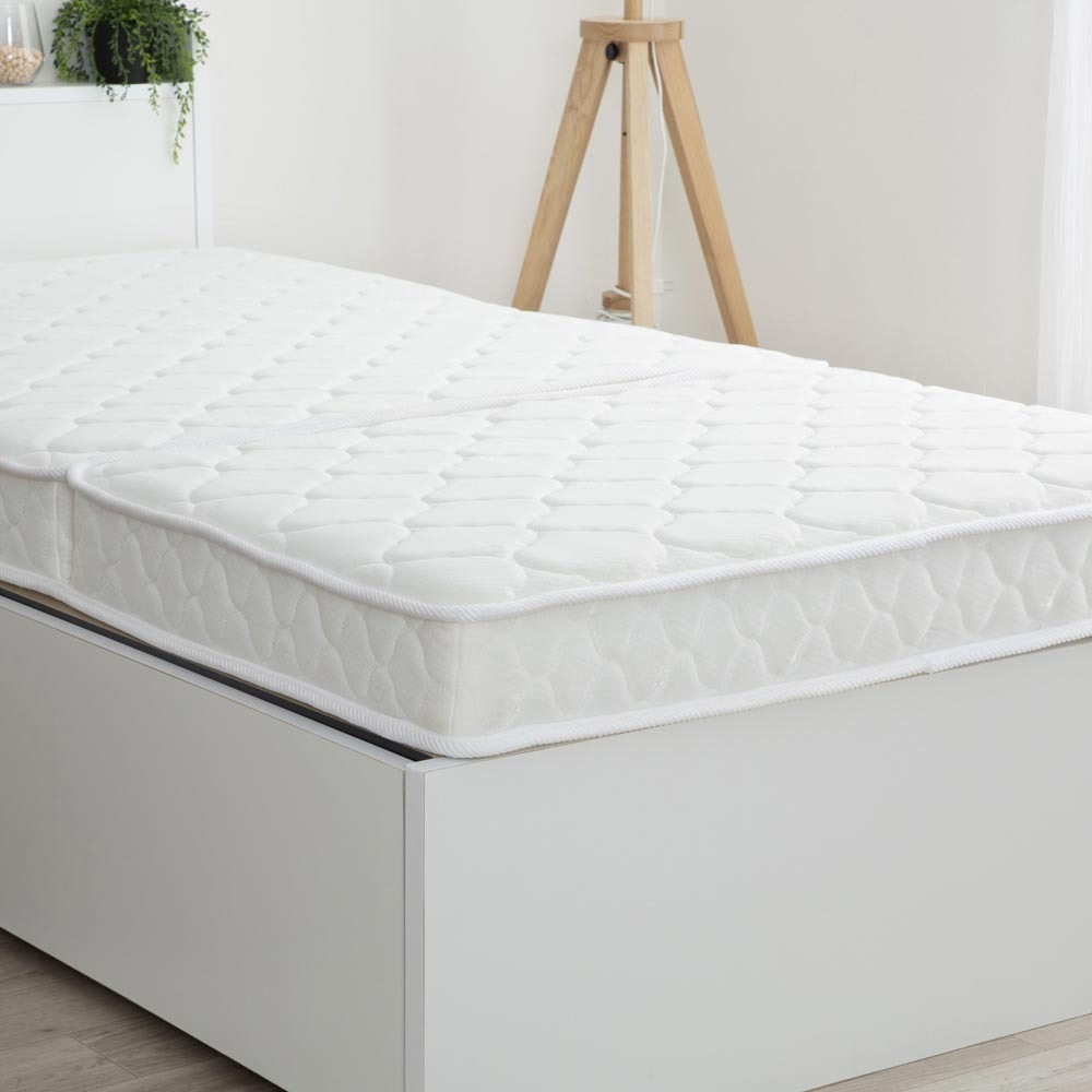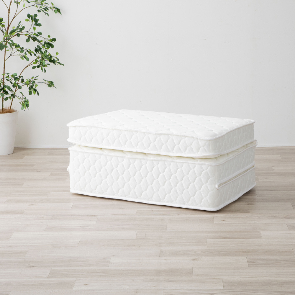パレットベッドと相性の良い、厚さ13cmの三つ折りマットレス。ポケットコイルが体圧を分散し、底付き感のない快適な寝心地をお約束します。両面仕様で裏表とご使用いただけます。三つ折りにしてコンパクトに収納できるので、来客用にもオススメです。