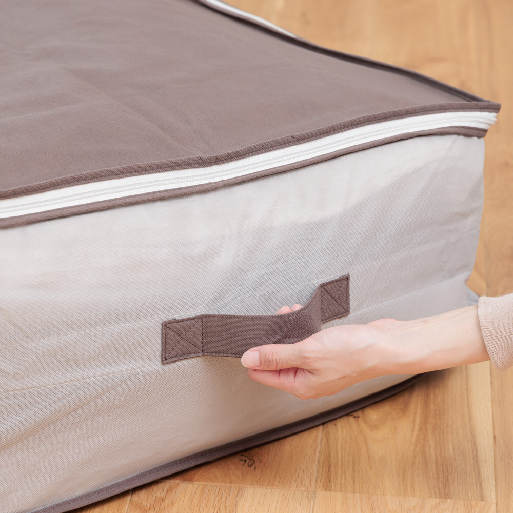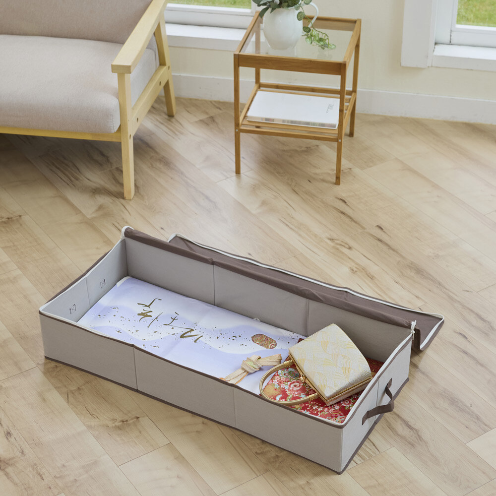 汚れ・ホコリから大切な着物を守ります。着物から帯や和装小物が一式入って重ね置きも出来る優れものです。炭加工シートの消臭力で汗のニオイや加齢臭を消臭しながら保管できます。【お得な4個組は2個組より5%OFF】汚れやほこりから大切な着物を守ります●着物から帯や和装小物まで一式収納が可能です。●たとう紙ごと着物をしまうことが出来ます。●大きく開くファスナーで出し入れも楽々。●収納ケースの両サイドには丈夫な持ち手が付いているので持ち運びに便利です。●着用頻度が低い着物でも、クローゼット上などにかさばらずに収納できます。●通気性がよく丈夫な不織布を使用し、破れにくい仕様です炭入りシートを内蔵した3層構造●炭加工シートを挟んだ不織布を使用しています。(炭加工シートは底面(キルト面)に使用しております。)●炭加工シートの消臭力で汗のニオイや加齢臭を消臭しながら着物を保管できます。シリーズ商品のご案内「炭入りで消臭 クローゼットにぴったり収納袋」シリーズには、以下の商品がございます。※4個組は2個組より5%OFF羽毛布団収納ケース 2個組・4個組かさばる羽毛布団をコンパクトに収納出来る布団収納袋。 クローゼットや押し入れの隙間にコンパクトに縦置き収納出来ます。布団一式収納ケース 2個組シーズンオフの布団や普段使わない来客用の布団をコンパクトに収納。着物一式収納ケース 2個組・4個組汚れ・ホコリから大切な着物を守ります。着物から帯や和装小物が一式入って重ね置きも出来る優れものです。衣類収納ケース 2個組・4個組汚れ・ホコリから大切な衣類を守ります。さらに消臭パワーをプラスした収納で、ニオイも気にならず安心。