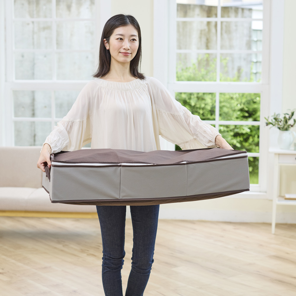 持ち運びやすいサイズ感で、クローゼットや押し入れへの出し入れも楽にできます。