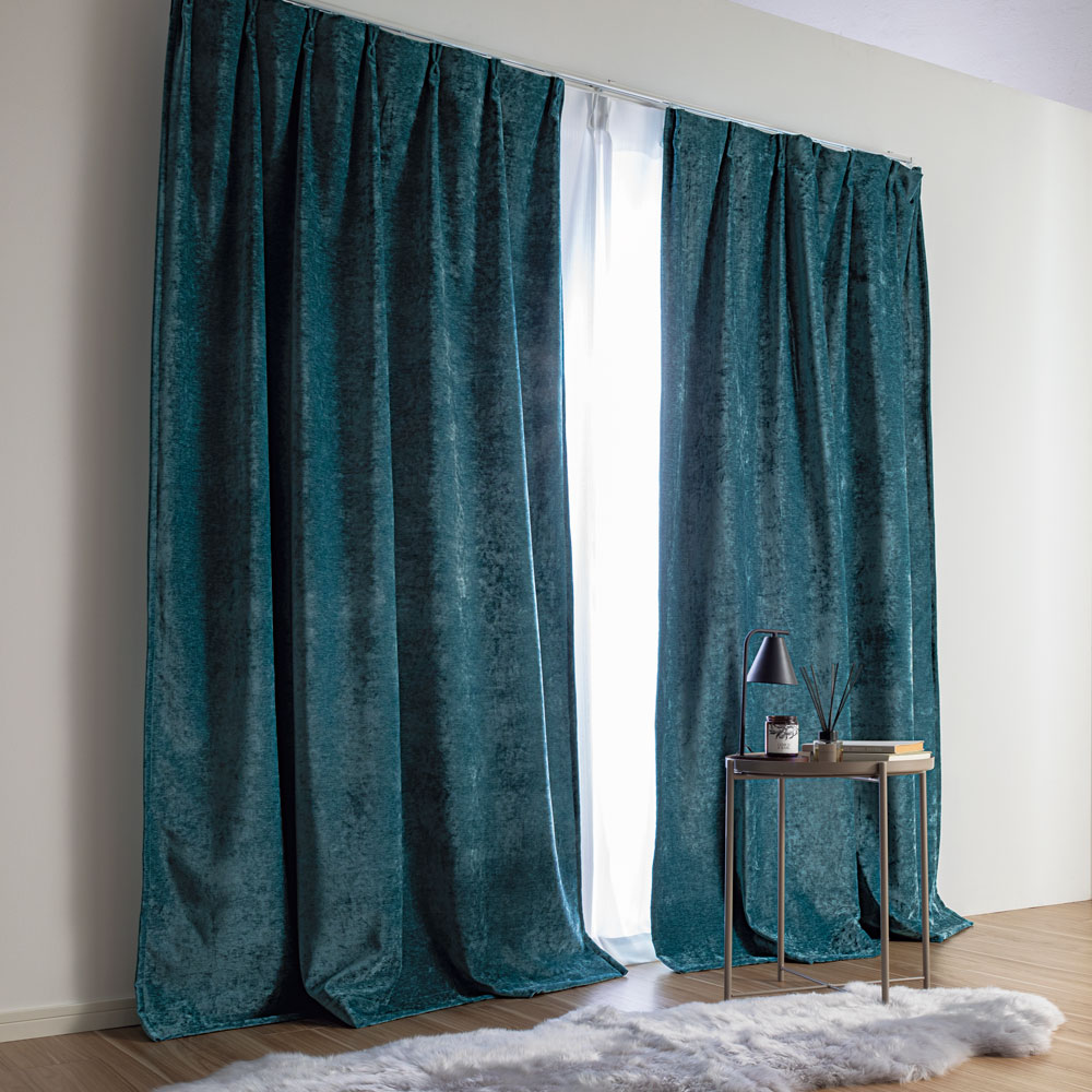 ベルベット調生地なので、ヨーロッパの伝統的なホテルのような、裾を床に長くたれさせる「ブレイクスタイル」にも使えて、クラシックでエレガントな印象が演出できます。ドレープもとてもキレイなので、お手持ちのビーズや金属の装飾が施されたタッセルを合わせるのもおすすめです。カーテンレールを隠す、正面付けのサイズでのお届けになります。【ポイント1】上質なベルベット調生地光沢感があり、トロっとしたやわらかなベルベット調生地が高級感を演出します。使いやすい淡色から重厚な雰囲気の濃色まで、4色をご用意しました。裏地は表地の同系色になります。【ポイント2】1級遮光日差しを遮るので朝日を気にせず眠れ、西日から家具や床の日焼けを守ります。夜は明かりが外に漏れにくいためプライバシー対策にもなります。
