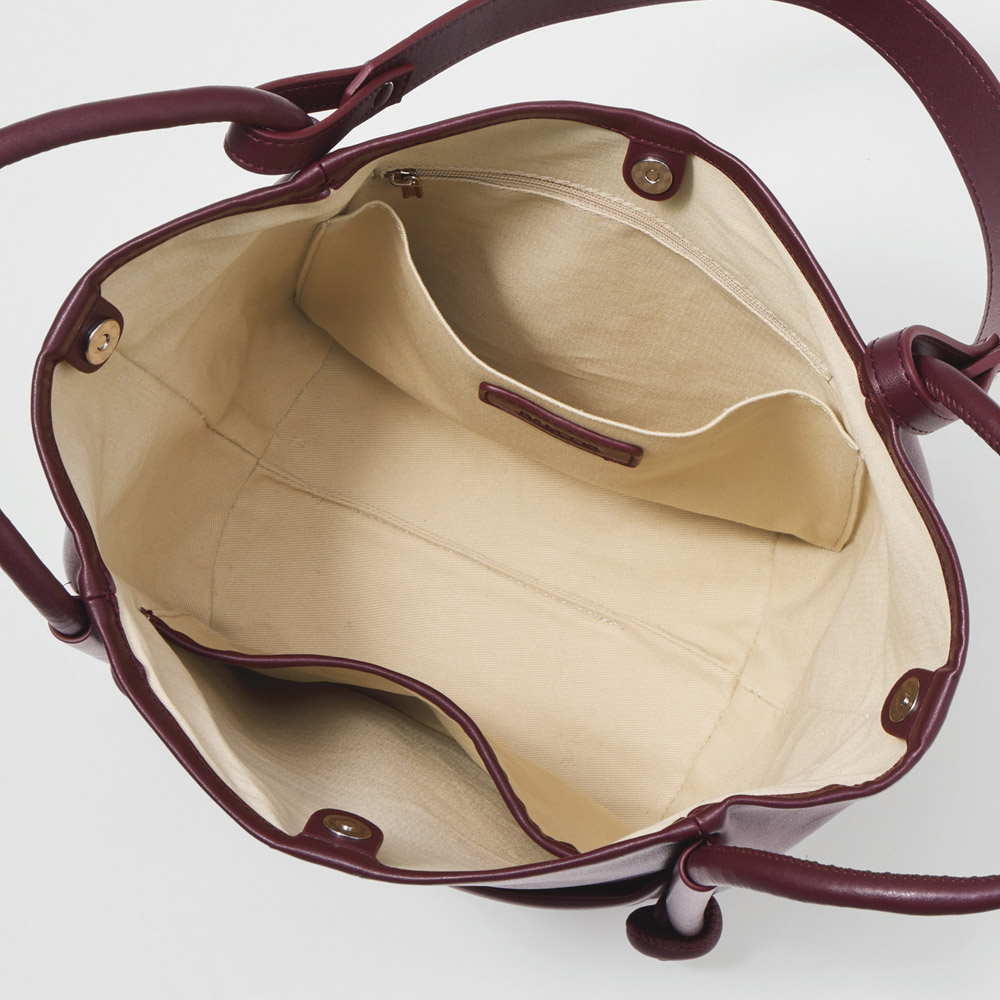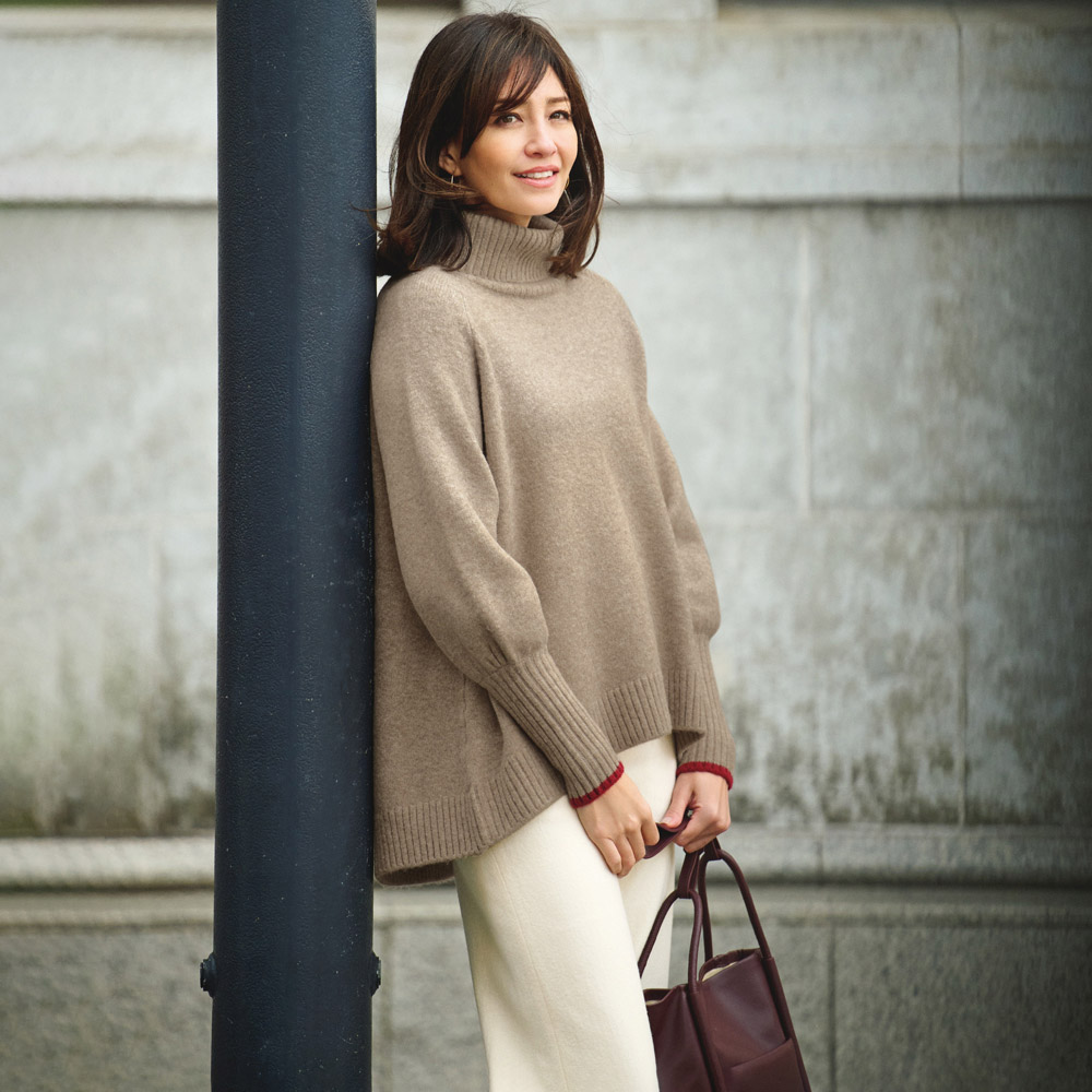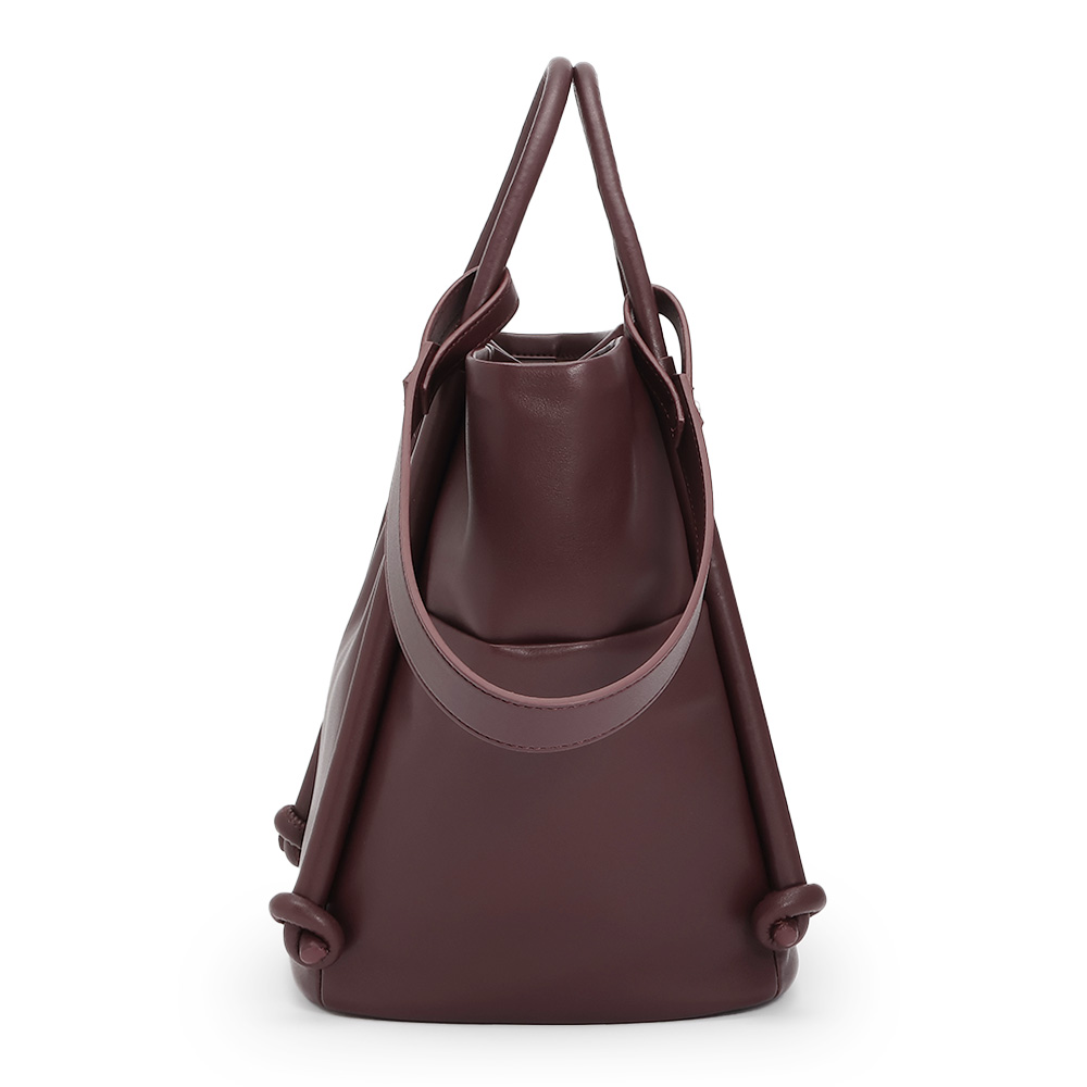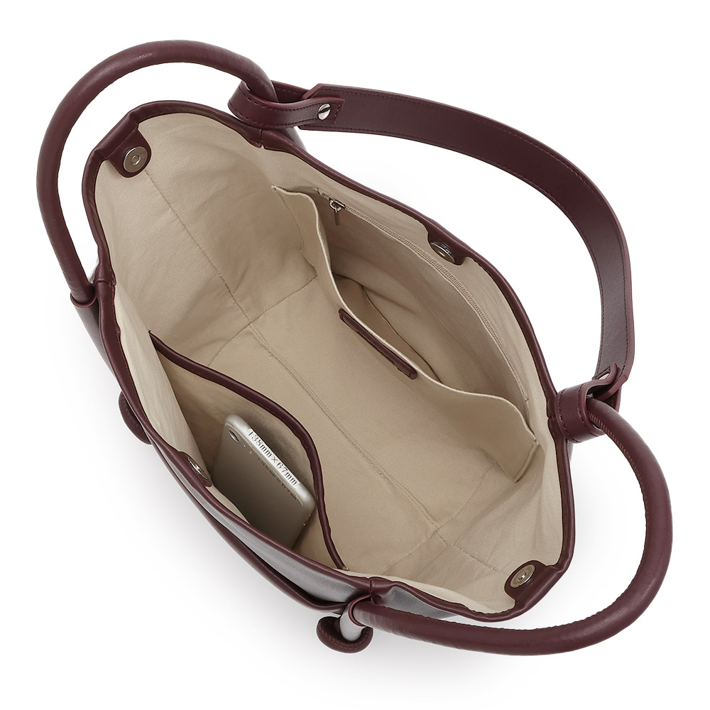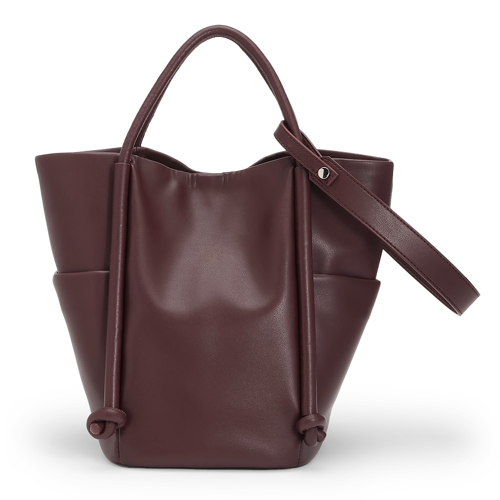 FASHION GOODS“旬”を盛り込んだ冬の小物リスト今っぽさを手軽に楽しめるのはもちろん、使いやすさにも拘り抜いたアイテムです。ストラップや向きの変化で簡単にイメチェン可能柔らかな素材で仕立てた大きめバッグは、ハンドル付け根のノットモチーフがポイント。手持ちと肩掛けに加え、ロングストラップでの斜め掛けも可能。持ち方によって見える面が変わり、バッグの印象が違って見えます。