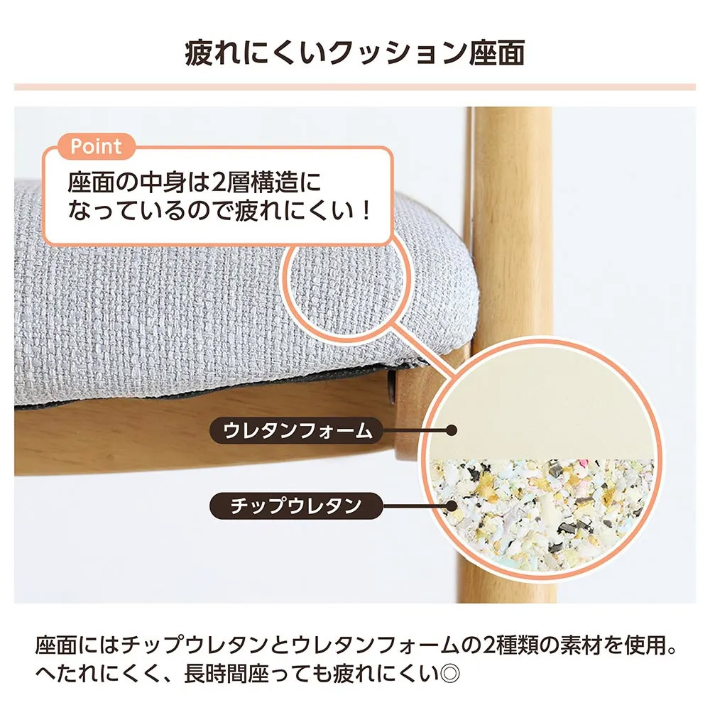 【疲れにくいクッション座面】座面にはチップウレタンとウレタンフォームを使用。へたりにくく長時間座っても疲れにくい仕様です。