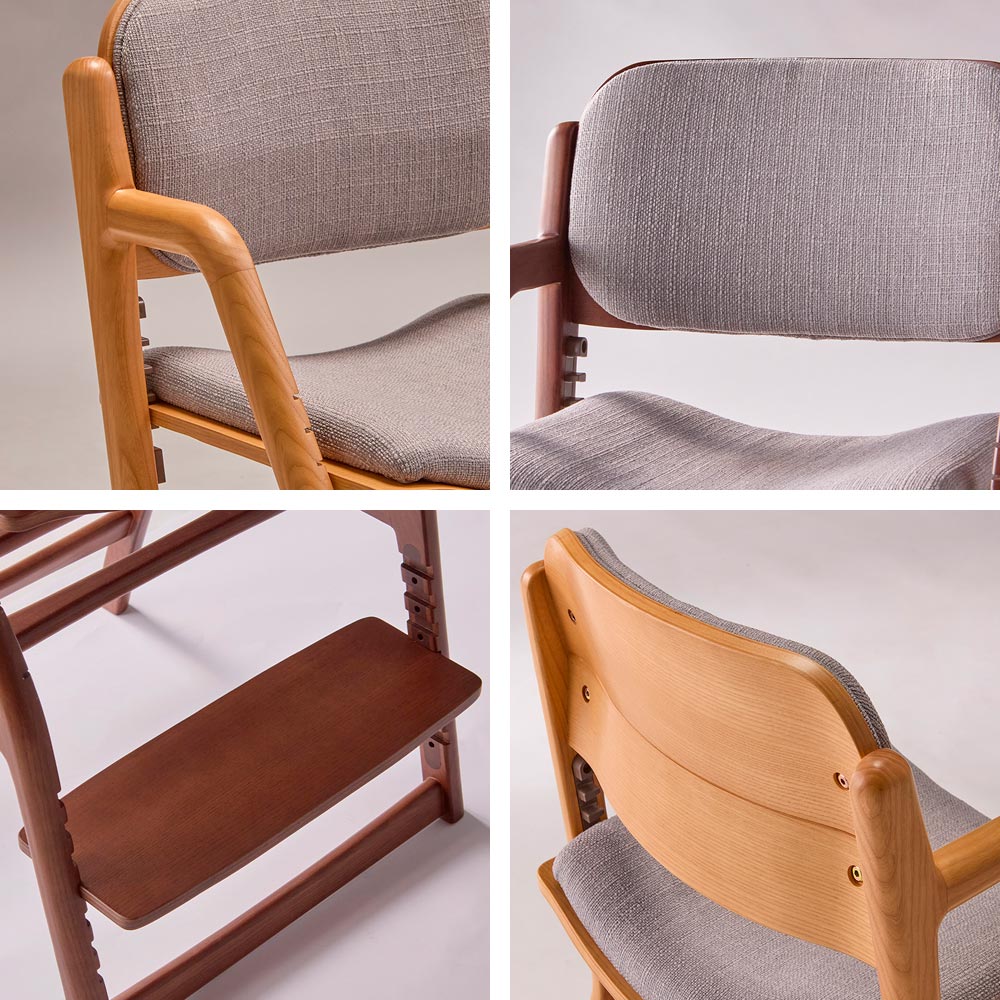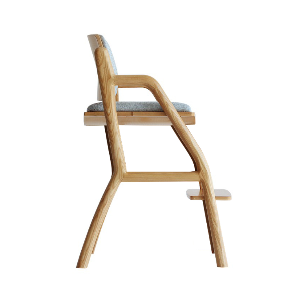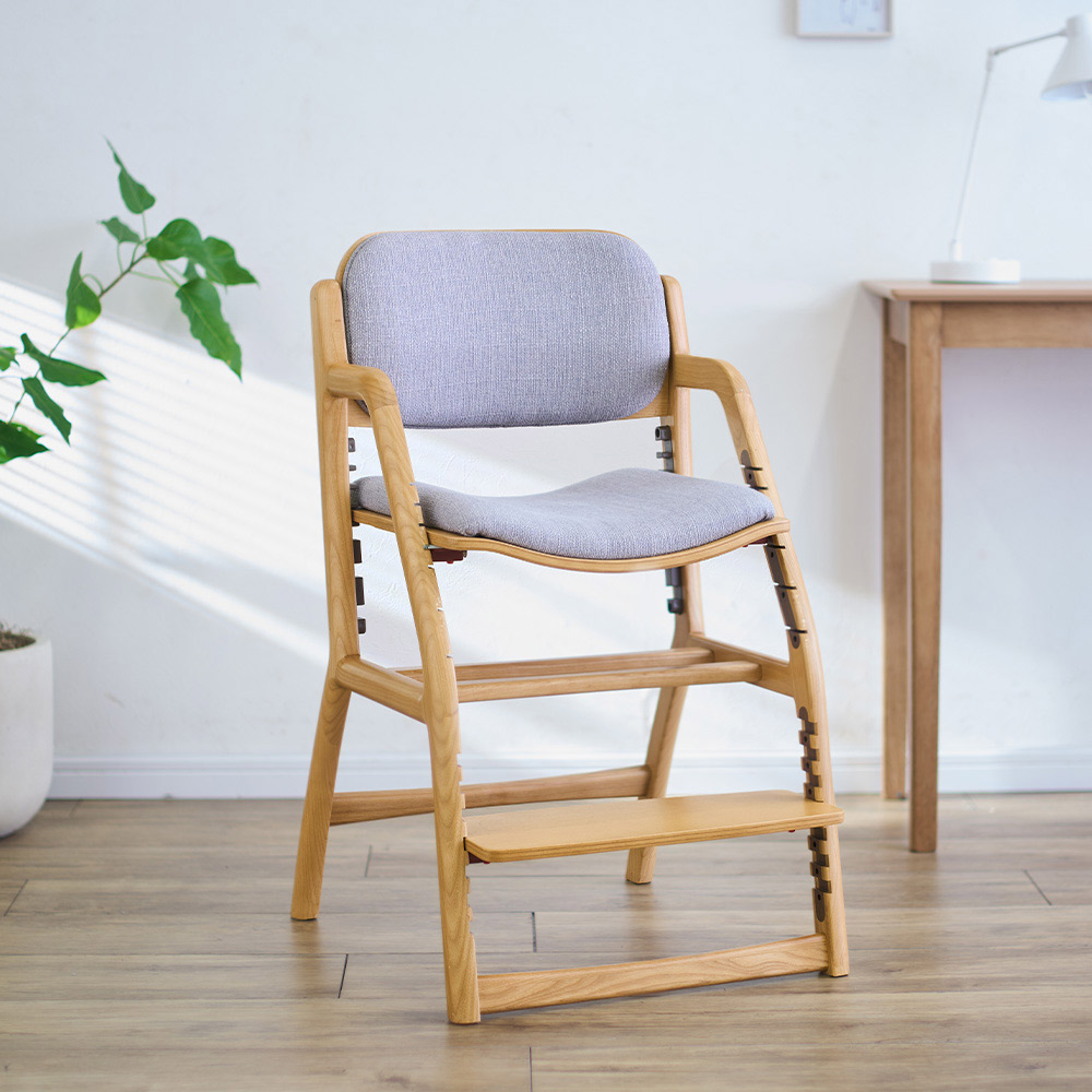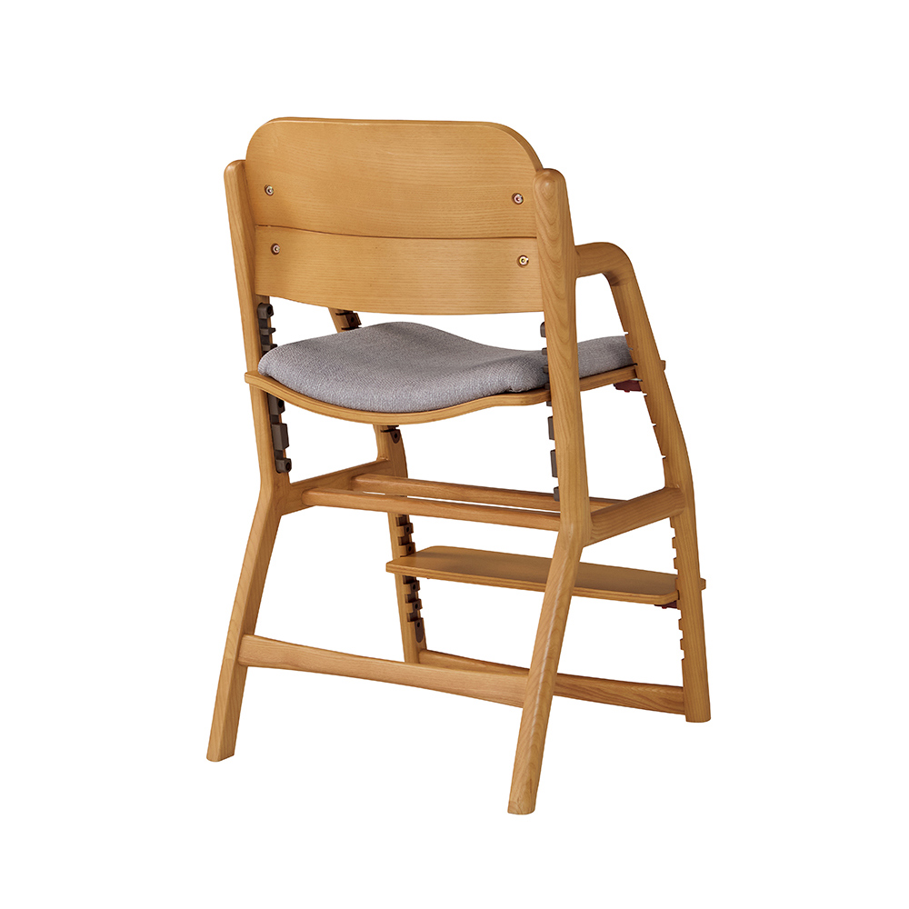 【安全な丸み】美しい木目が特徴のアッシュ天然木は耐久性にも優れており、幼少期の子供も安心して使えるように、角を丸めて安全な形と優しい手触りに仕上げています。背もたれは体に沿う曲げ加工を施しています。