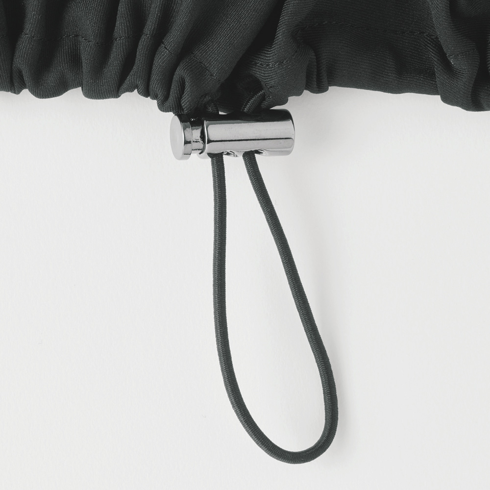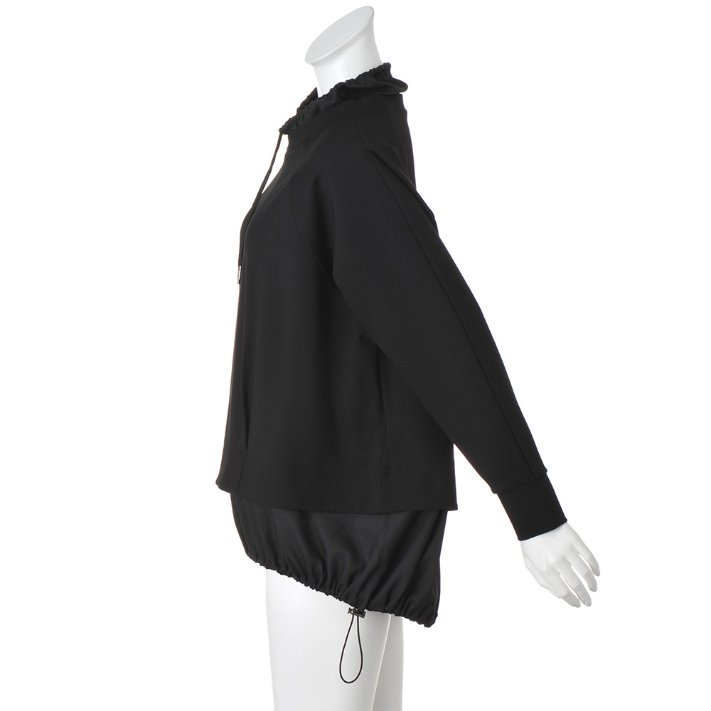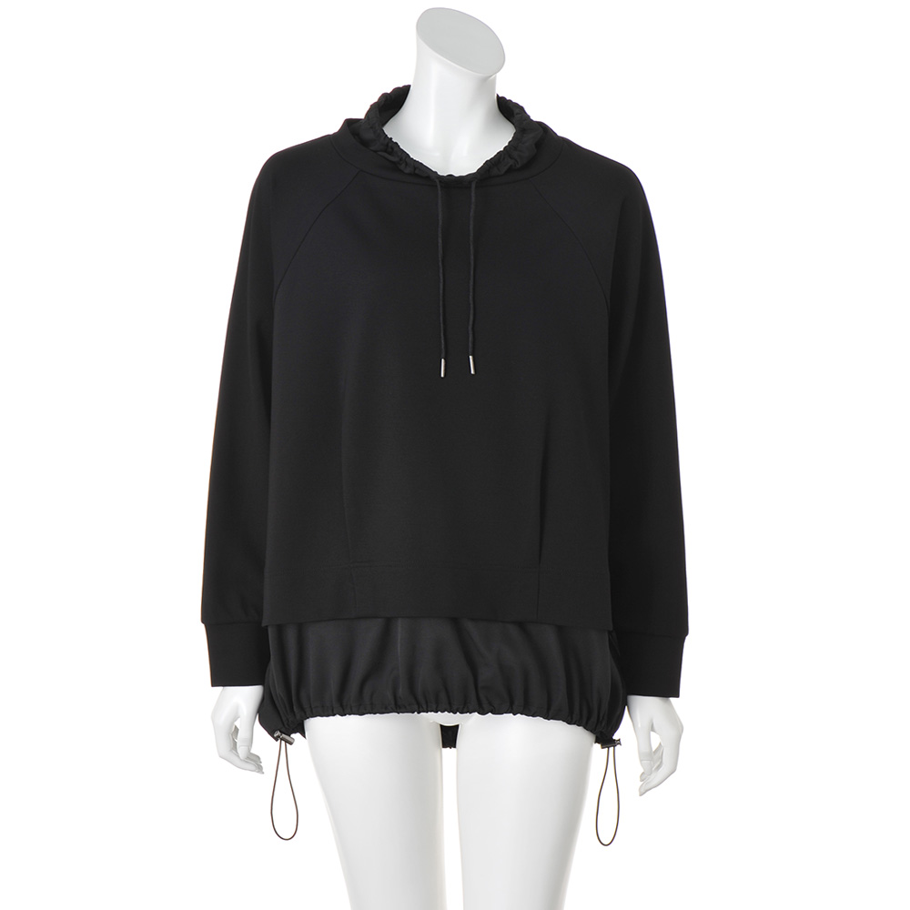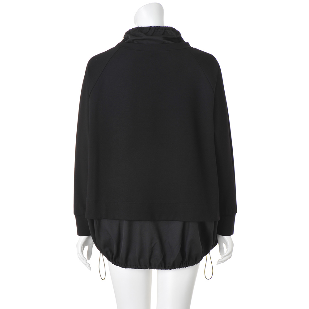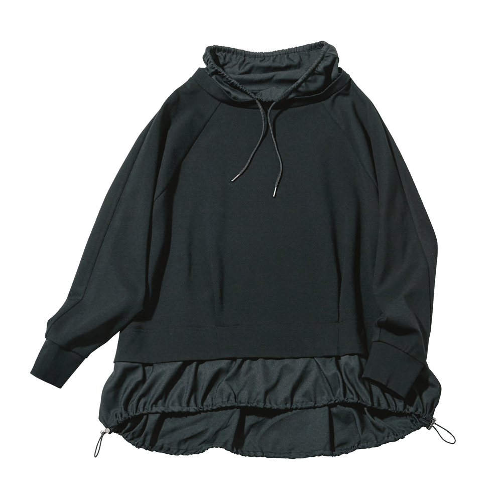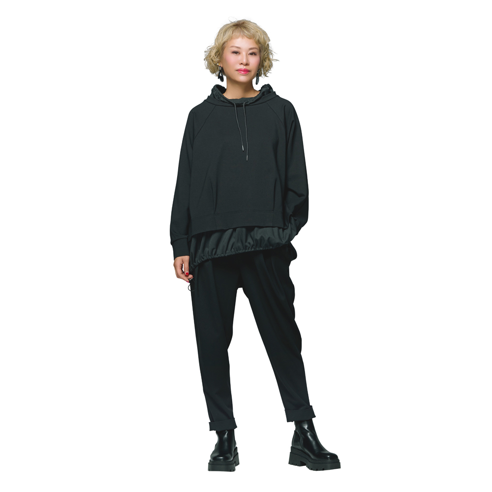 • 襟ぐりと裾は微光沢の布帛生地で切り替えて、黒でも軽やかな印象に。