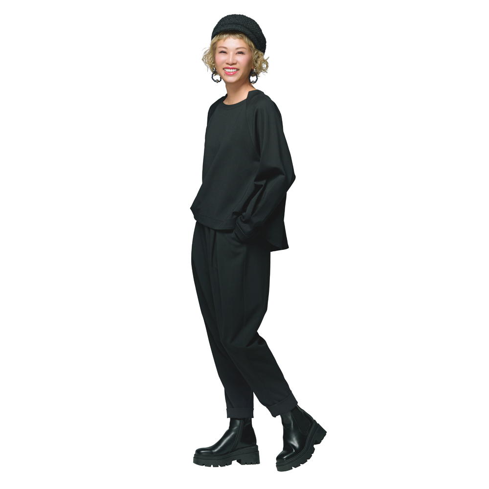 ディレクター森本容子さんとのコラボレーションアイテムが初登場!!着やすいのにどこかひとクセ効いたデザインは、シンプルな着こなしで、洗練されたルックが完成します。森本容子の服造りのポイント“魅せる”と“隠す”の強弱をつけたバランスで、スタイルカバー&アップ。難しく考えずに、さらりと一枚着るだけでおしゃれがキマるアイテムをテーマに、本来の個性を引き立たせるマイナスのコーディネートを提案します。そして、エイジレスでジャンルレス。削ぎ落としたデザインは、合わせるアイテムを選ばず、手持ちの服に一点足すだけで“どこか素敵な人”になれるはず。ぱっと見大きすぎるように思えても、計算されたオーバーシルエットのためいつも自分が選ぶサイズでOK。着る自分自身がきゃしゃだと勘違いするようなその魅力を、ぜひ袖を通して実感してみていただきたいです。工夫を凝らしたディテールは、バックスタイルも含めて全方位美しく見えるようにこだわりました。森本容子 YOCO MORIMOTO Profile109のカリスマ店員として人気を博し、数多くのブランドに携わる。2005年にYOCO MORIMOTO DESIGN OFFICEを設立。30代〜50代に向けたKariAngのディレクションと並行し、ブランドコンサルや異業種とのコラボ、メディア出演等、多方面で活躍中。プライベートでは1児の母。YOCO’s voiceジャージー生地のロンTを、女性らしい表情を加えてモードに仕立てました。サイドが立ち上がった襟ぐりは、首を長く見せて艶っぽいデコルテを演出。つかず離れずの身頃は、バックに切り替えを入れて背中の丸みをカモフラージュ。前後差のある裾に動きが生まれ、エレガントに魅せます。シチュエーションを選ばずに使える、ハイブリッドな一着です。