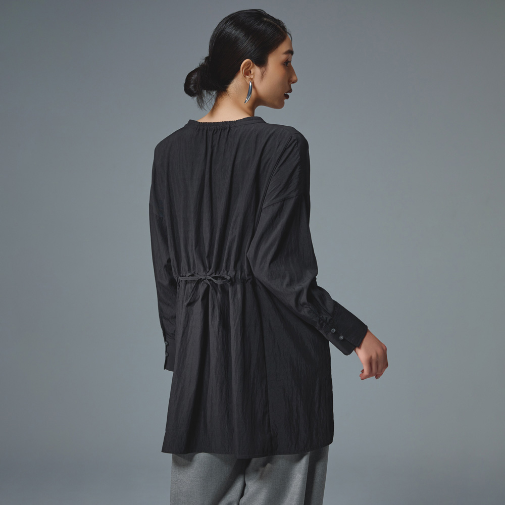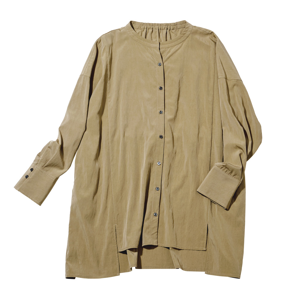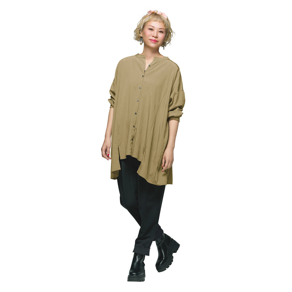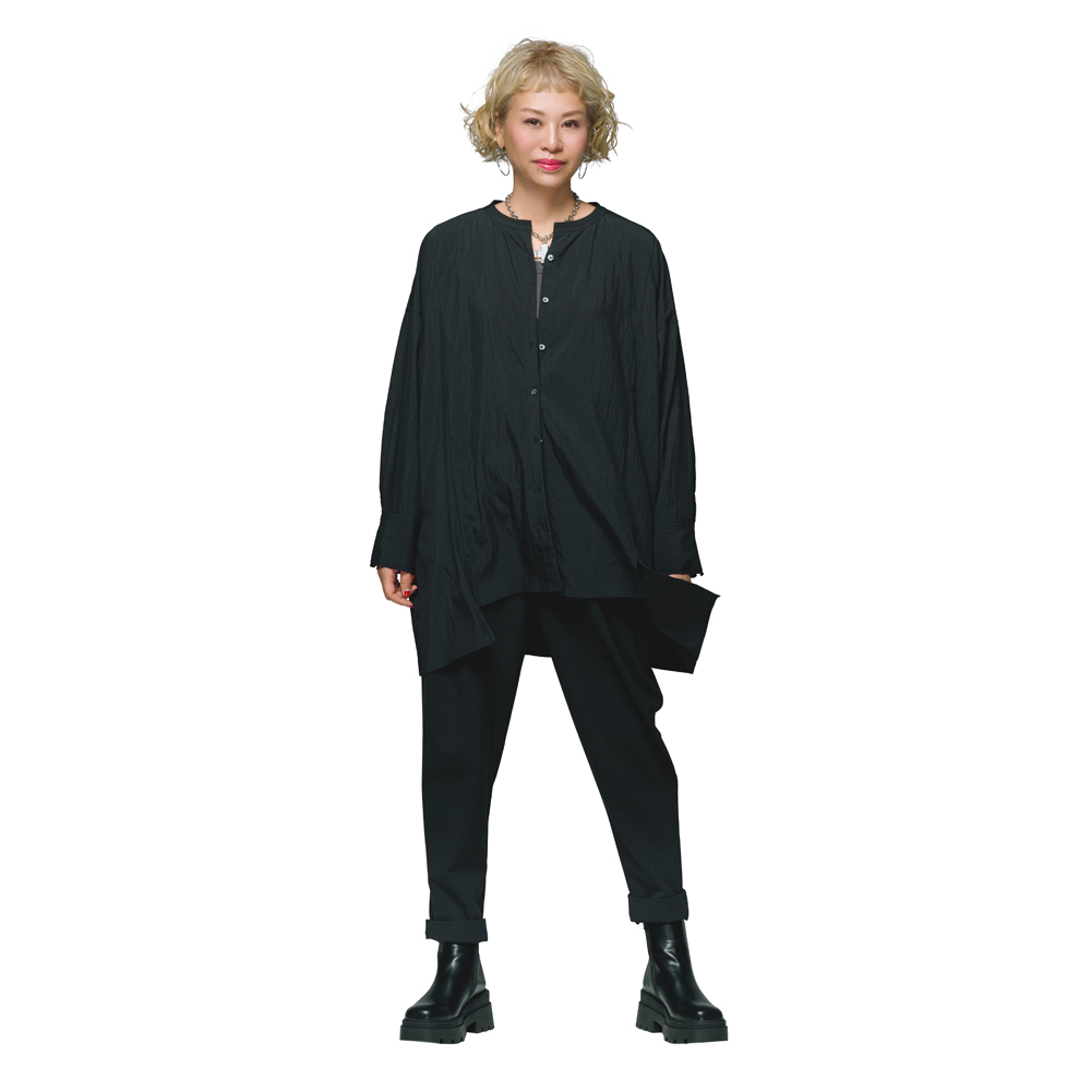 YOCO MORIMOTO Collaborationディレクター森本容子さんとのコラボレーションアイテムが初登場!!着やすいのにどこかひとクセ効いたデザインは、シンプルな着こなしで、洗練されたルックが完成します。森本容子の服造りのポイント“魅せる”と“隠す”の強弱をつけたバランスで、スタイルカバー&アップ。難しく考えずに、さらりと一枚着るだけでおしゃれがキマるアイテムをテーマに、本来の個性を引き立たせるマイナスのコーディネートを提案します。そして、エイジレスでジャンルレス。削ぎ落としたデザインは、合わせるアイテムを選ばず、手持ちの服に一点足すだけで“どこか素敵な人”になれるはず。ぱっと見大きすぎるように思えても、計算されたオーバーシルエットのためいつも自分が選ぶサイズでOK。着る自分自身がきゃしゃだと勘違いするようなその魅力を、ぜひ袖を通して実感してみていただきたいです。工夫を凝らしたディテールは、バックスタイルも含めて全方位美しく見えるようにこだわりました。森本容子 YOCO MORIMOTO Profile109のカリスマ店員として人気を博し、数多くのブランドに携わる。2005年にYOCO MORIMOTO DESIGN OFFICEを設立。30代〜50代に向けたKariAngのディレクションと並行し、ブランドコンサルや異業種とのコラボ、メディア出演等、多方面で活躍中。プライベートでは1児の母。YOCO’s voice首元を開けるスタイルがキマるように、第1ボタンの位置を下げてキーネック風に。後ろ襟ぐりにほどこしたゴムギャザーが、背中のフォルムをカバーしながら、裾の揺れ感をメイク。長めに設定したカフスは手首のきゃしゃ見えをアシストし、ゴムループ留めのボタンで折り返しやすいようにひと工夫。「ゆったりシルエットなのに、細見えするシルエット」にこだわりました。