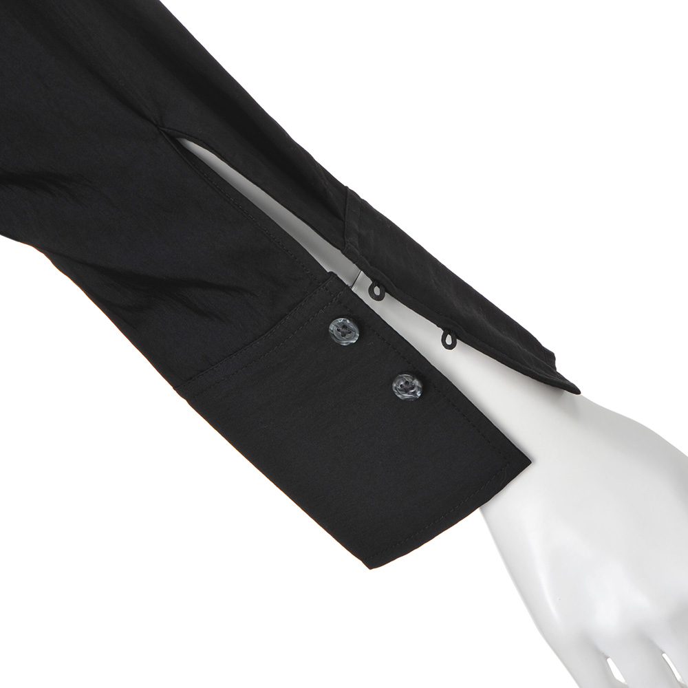 (イ)ブラック 微光沢&シボ感がある生地だからきれいめカジュアルな印象に。