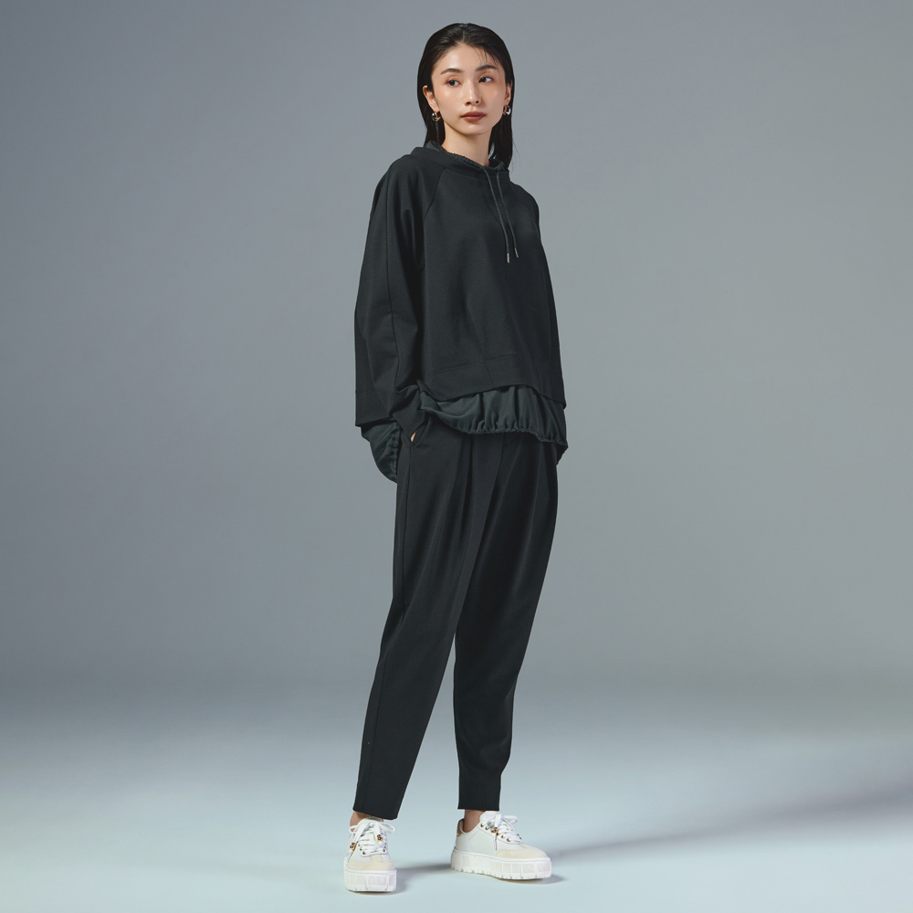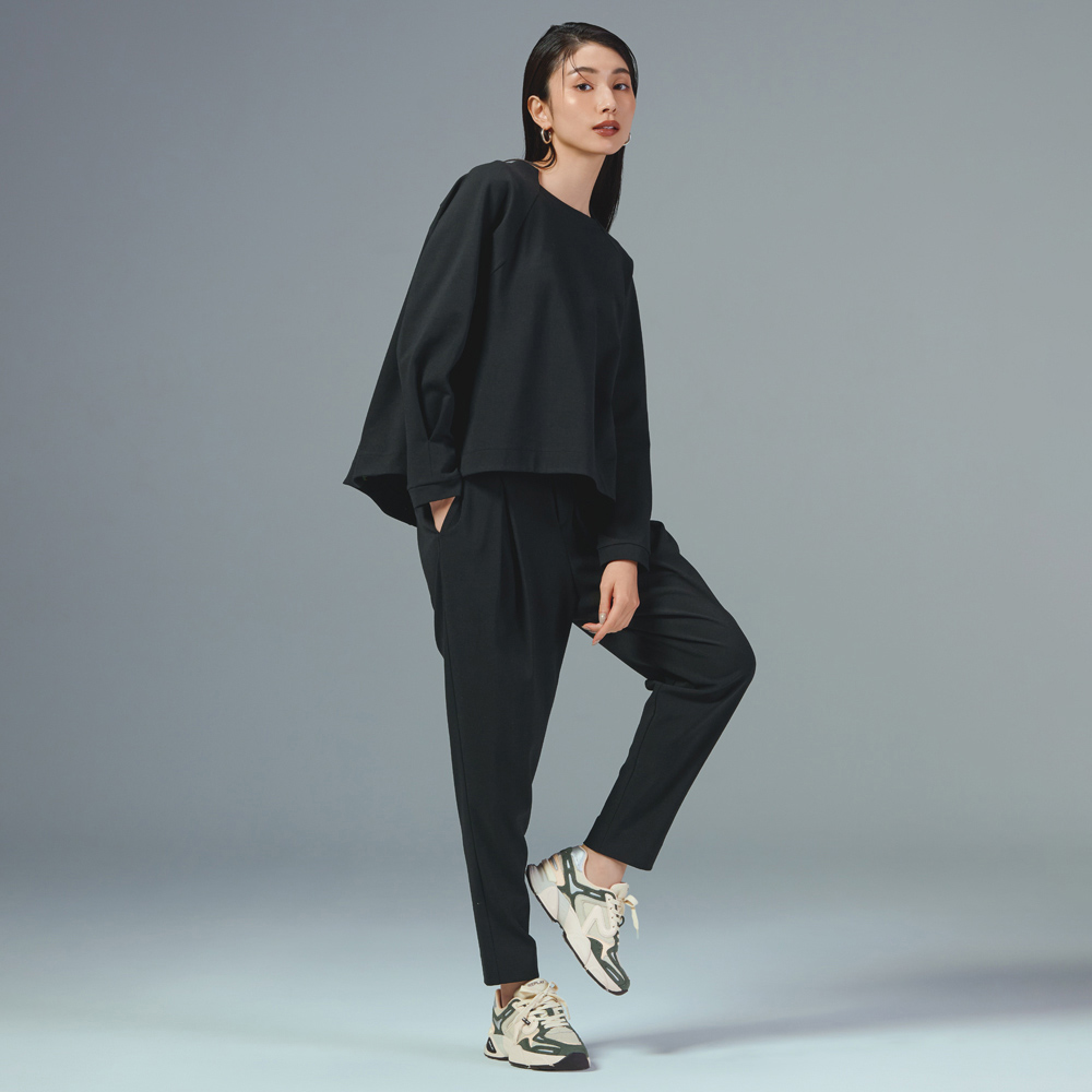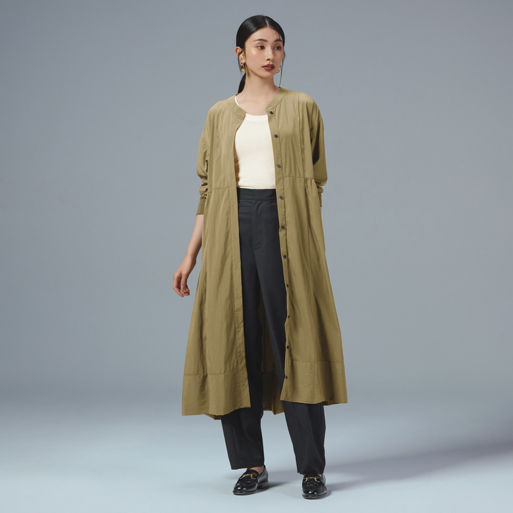 YOCO MORIMOTO Collaborationディレクター森本容子さんとのコラボレーションアイテムが初登場!!着やすいのにどこかひとクセ効いたデザインは、シンプルな着こなしで、洗練されたルックが完成します。森本容子の服造りのポイント“魅せる”と“隠す”の強弱をつけたバランスで、スタイルカバー&アップ。難しく考えずに、さらりと一枚着るだけでおしゃれがキマるアイテムをテーマに、本来の個性を引き立たせるマイナスのコーディネートを提案します。そして、エイジレスでジャンルレス。削ぎ落としたデザインは、合わせるアイテムを選ばず、手持ちの服に一点足すだけで“どこか素敵な人”になれるはず。ぱっと見大きすぎるように思えても、計算されたオーバーシルエットのためいつも自分が選ぶサイズでOK。着る自分自身がきゃしゃだと勘違いするようなその魅力を、ぜひ袖を通して実感してみていただきたいです。工夫を凝らしたディテールは、バックスタイルも含めて全方位美しく見えるようにこだわりました。森本容子 YOCO MORIMOTO Profile109のカリスマ店員として人気を博し、数多くのブランドに携わる。2005年にYOCO MORIMOTO DESIGN OFFICEを設立。30代〜50代に向けたKariAngのディレクションと並行し、ブランドコンサルや異業種とのコラボ、メディア出演等、多方面で活躍中。プライベートでは1児の母。YOCO’s voice腰まわりはゆったり、足首に向けてきゅっと絞ったシルエットで、スタイルカバー&アップを叶えるパンツ。深い股上で脚の長さをあやふやに見せて、バックウエストに仕込んだゴムギャザーがヒップのあたりを目くらまし。計算されたゆとりが余裕のある風情に。長めに取った裾の縫い代は、靴に合わせてひと折りするなどのアレンジもおすすめです。