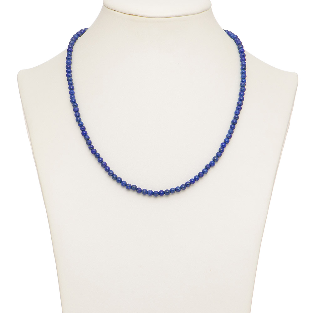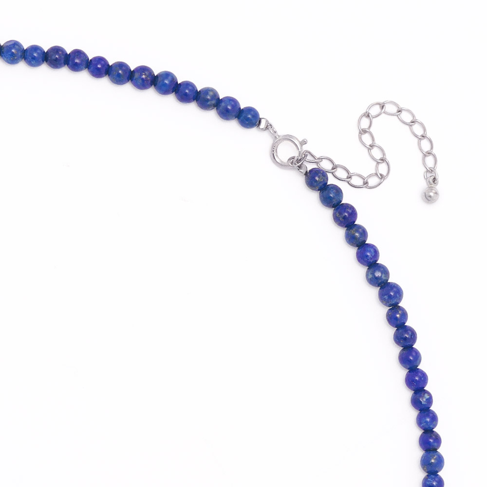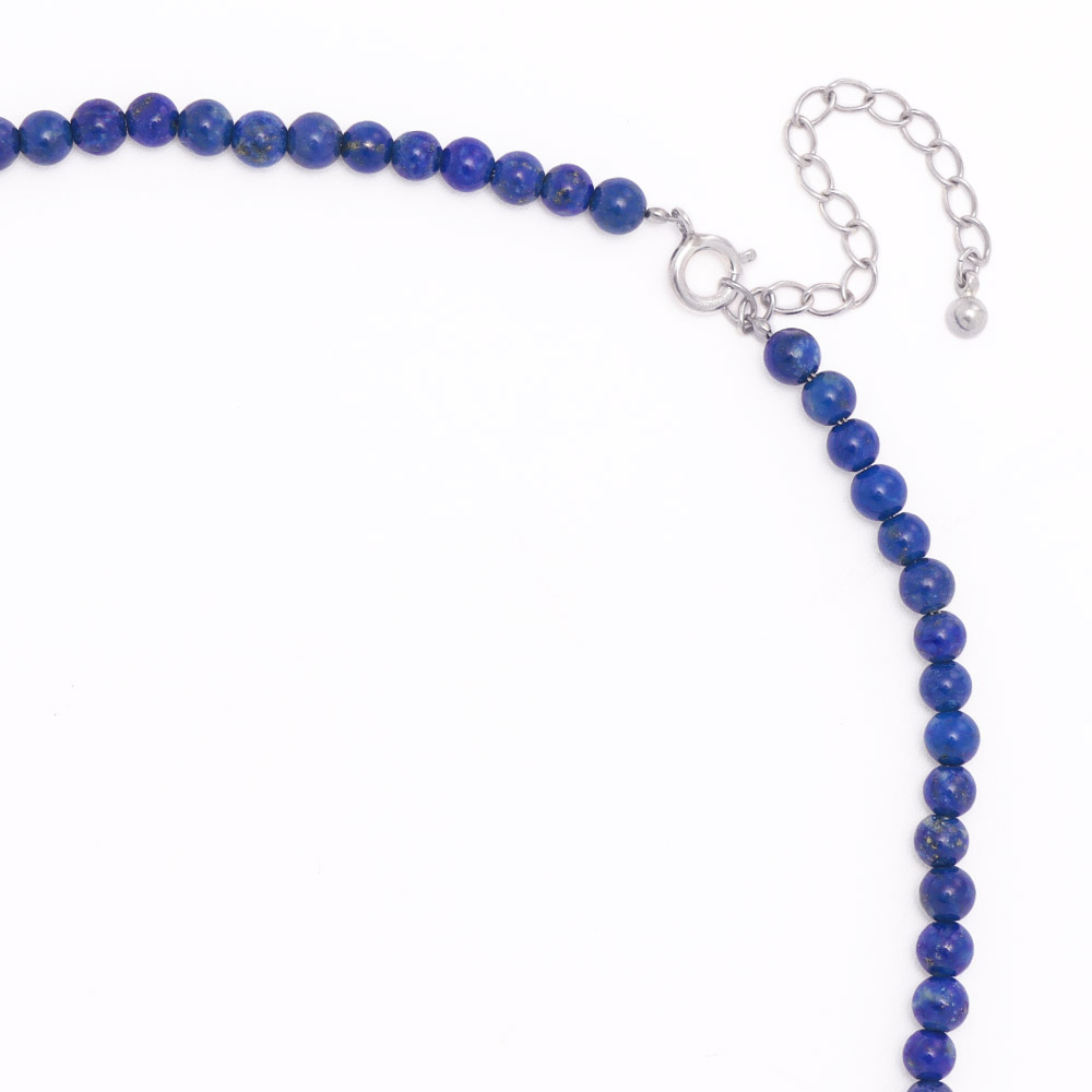 「碌山」の世界観を彩るラピスラズリの静謐な青丸珠が瑞々しい艶感のラピスラズリ。一連ネックレスは長さを調節できるアジャスターチェーン付き。