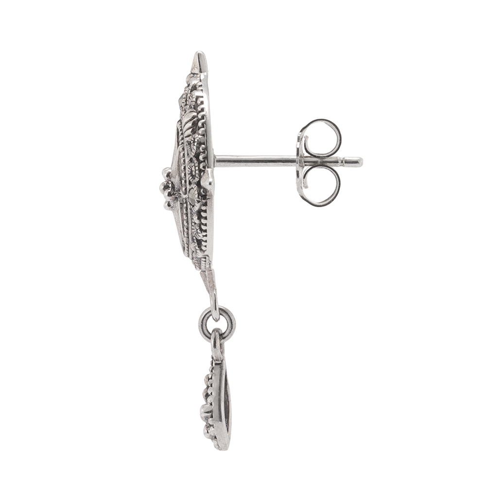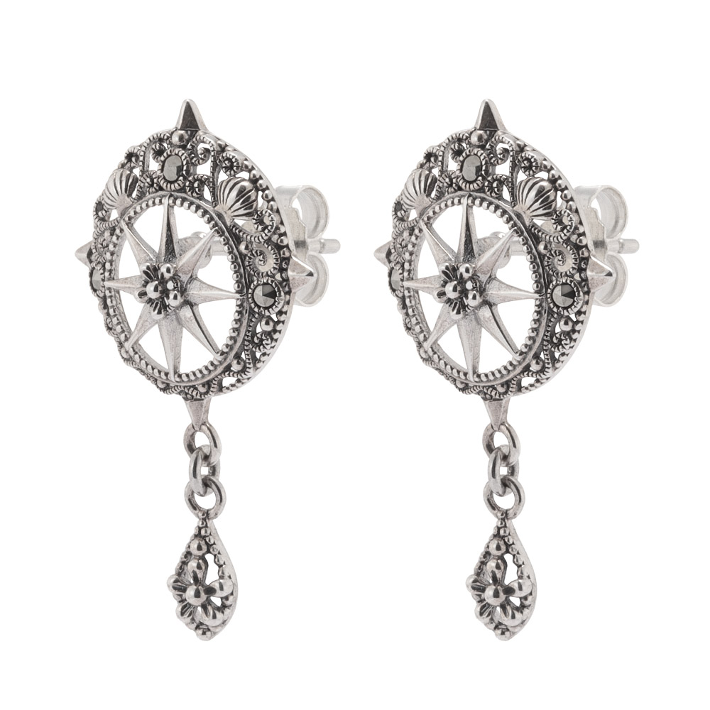 心を解き放つマリンのニュアンス揺れるピアス。肌身離さず身につけていられる幸運モチーフを、貝殻をあしらったマリンテイストで堪能。マルカジットが繊細に煌めきます。
