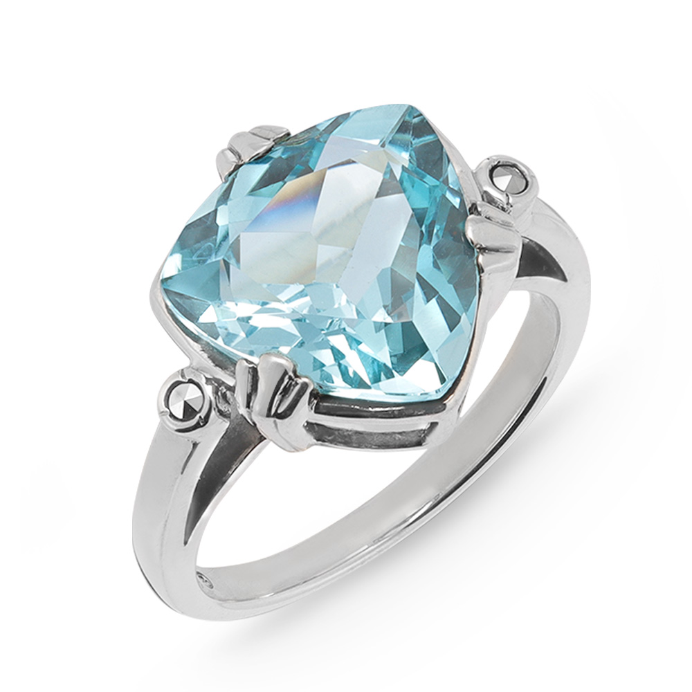 印象を操る、輝きのエフェクト薄着の時季こそ重視したい、アクセサリーの美麗効果。着け映えと活躍度の高さに満足していただける優秀デザインをセレクトしました。眩い日射しをクールにキャッチ人気の「碌山」から、透明感溢れるブルートパーズが登場。モダンなトライアングルカットを繊細な3本爪でセットしたリング。指を美しく見せるボリュームも魅力。