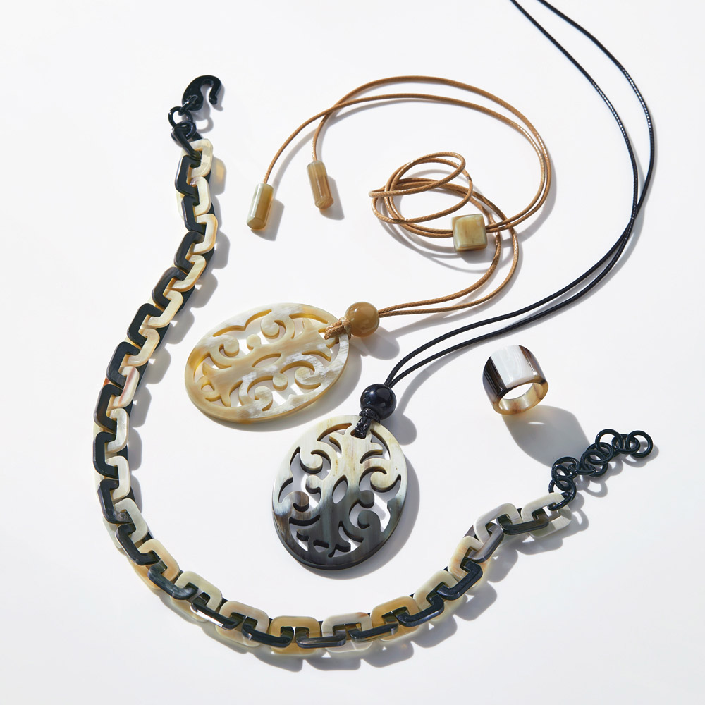 珠玉ブランドで見つける「今すぐ使える」アイテム毎日のお洒落のアクセントになる輝きを、話題のブランドからピックアップ。水牛のまろやかな質感を大胆なフォルムで楽しむシンプル服に映える人気の水牛アクセサリー。軽量なので大ぶりでも疲れ知らずの着用感。上品な透かし柄をカービング加工で表現。スライドアジャスター仕様で長さ調整が可能。水牛(フランス企画)アートに造詣が深いフランス人デザイナー、ピエール・スリー氏の感性と、ベトナムの熟練職人の手技が融合した水牛アクセサリー。ベトナムの伝統工芸にフランスのエスプリが吹き込まれたモダンなデザインで世界中から愛されている。