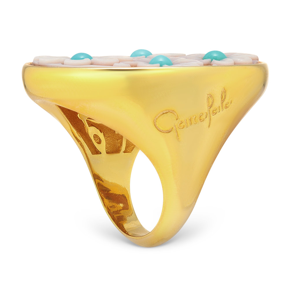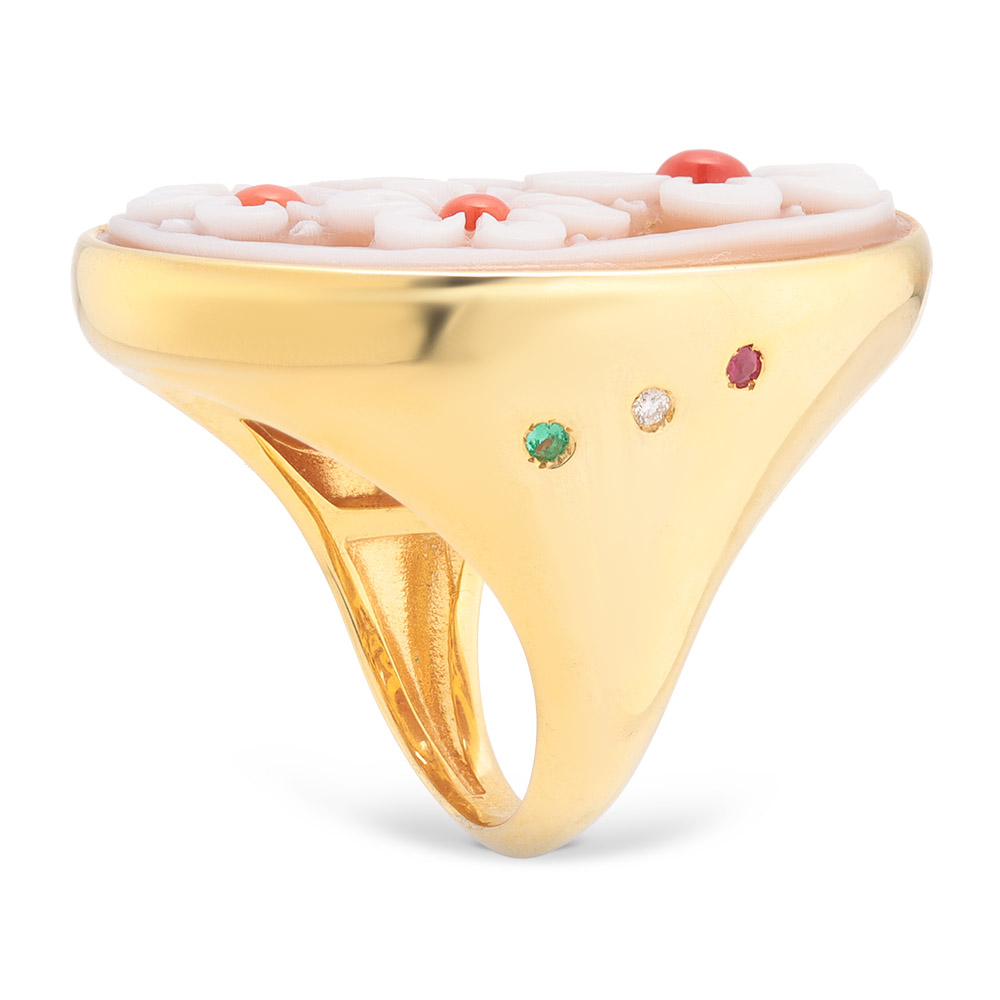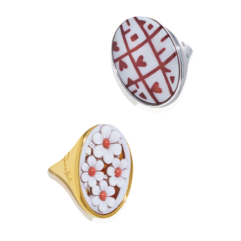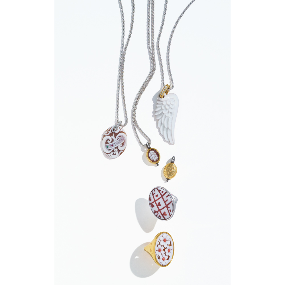 精緻な細工が織りなす構築美 イタリアン・ジュエリーカトリック教徒の一大行事、聖年(2025ジュビリー)を前に、世界の注目を集めるイタリアに思いを馳せて…。歴史と共に進化し続けるジュエリーの世界をご紹介します。新しい解釈で纏うガロファロの芸術性イタリアが誇るカメオ界の巨匠ジェンナーロ・ガロファロの美意識を受け継ぎ、現代のエッセンスを加えたフェザーモチーフのカメオペンダント。イタリアンシルバーのカジュアルアイテムをレイヤードに効かせれば、洗練されたモードな装いが完成します。ターコイズや珊瑚をあしらったフラワーと、ハートを遊び心たっぷりにアレンジした人気リング。
