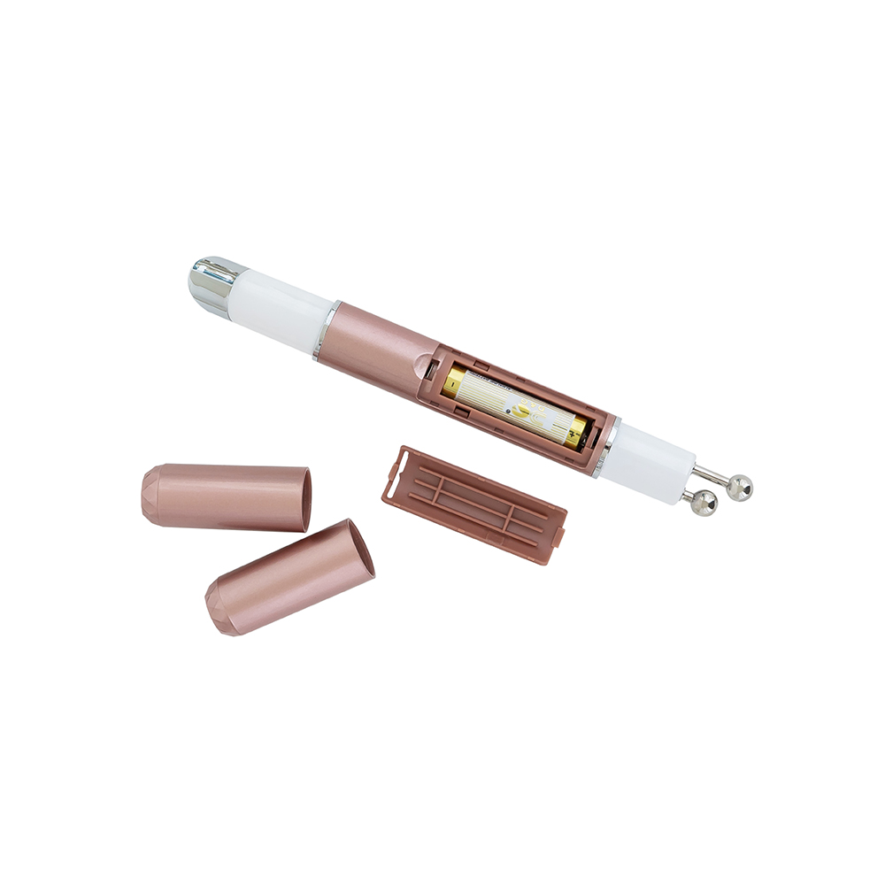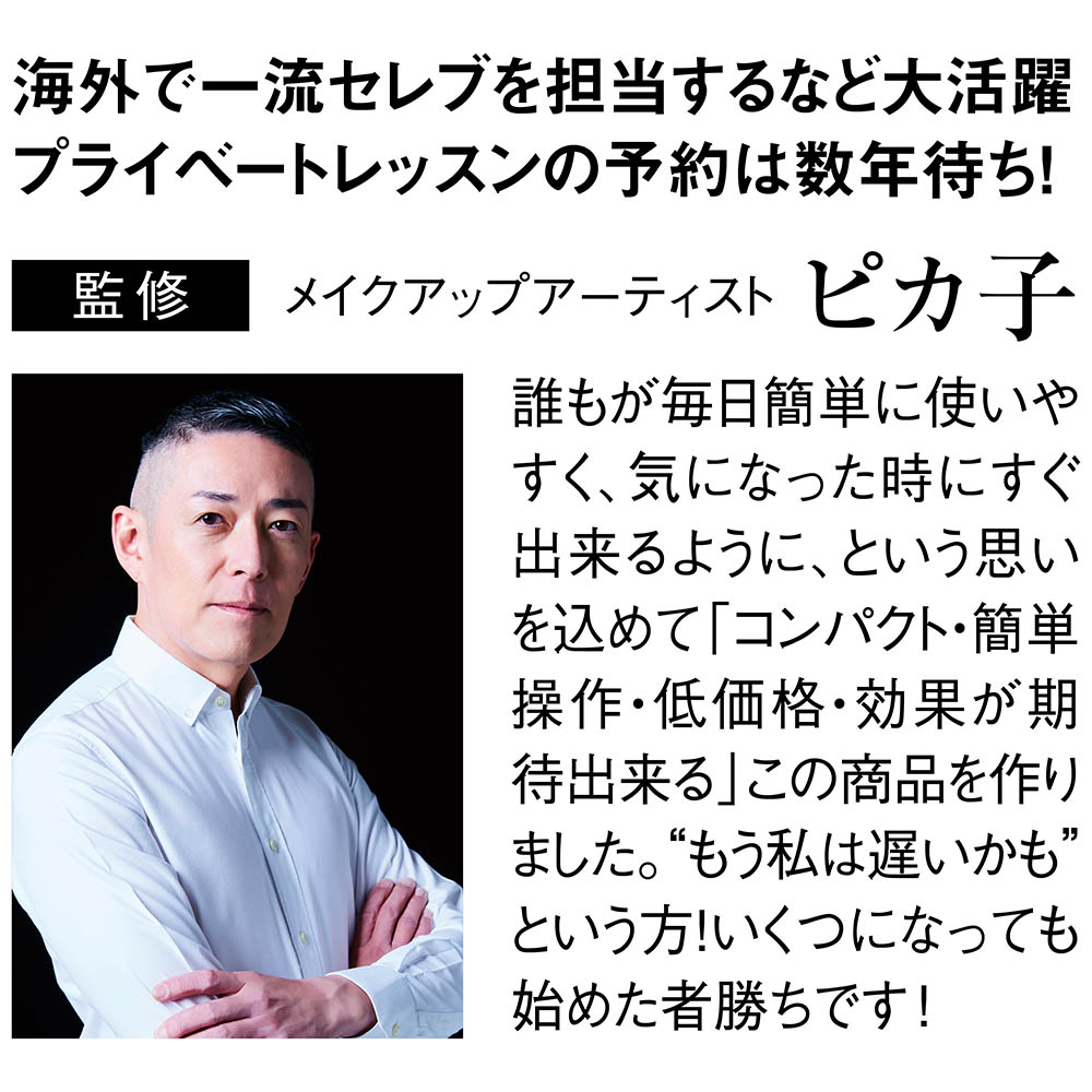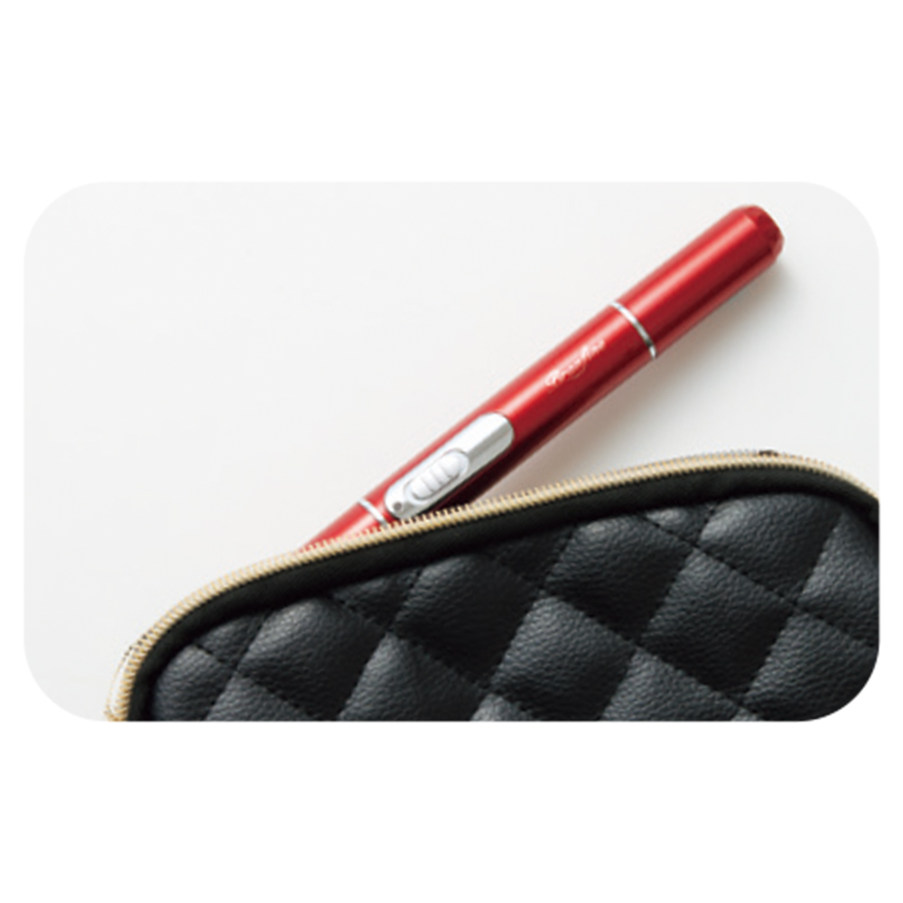 振動と微弱EMSのWアプローチどんより顔にピンポイント刺激。メーカー直販価格* 16500円(税込) ⇒7998円(税込)8502円 おトク!* VERTEX直販サイトにおいてメイクアップアーティスト・ピカ子さんが監修する大人気ハンディー美顔器!口元や目尻、額など気になる箇所を微弱*EMSとバイブレーションのWでピンポイントに刺激できます。メイクポーチや鞄に忍ばせて、気になった時にサッと使用できる手軽さがオススメ。気分が上がるレッドがディノスに初登場です!振動と微弱*EMSのWアプローチ振動と微弱*EMSでどんより顔にアプローチ。約3秒ごとに異なる3種類の周波数(50Hz、200Hz、1000Hz)の微弱*EMSと毎分約12000回のバイブレーションのW効果により、筋肉を刺激します。「ななめヘッド」は額や頬など広い部位におすすめ。角を使えば細かい部分にもしっかりフィットします。「ボールヘッド」挟み込みケアにぴったり。頭皮使いもおすすめです。メイクの上からOK!使いやすさと続けやすさになりよりこだわったこの商品。メイクの上からでも使用OKなのでメイク直しなどのすきま時間にケアできます。単4電池1本で使えて手軽。軽くていつもでどこでも使いやすいのが◎*EMSの感じ方には個人差があります。