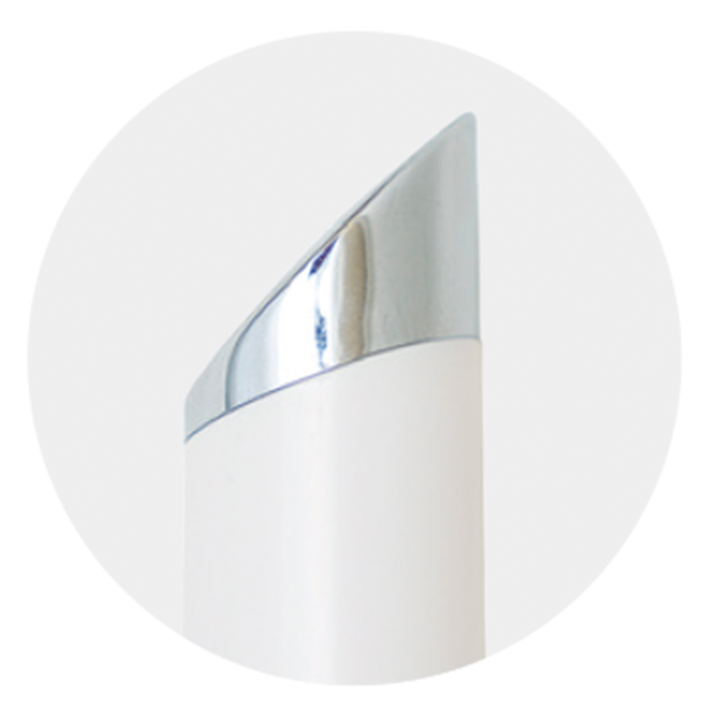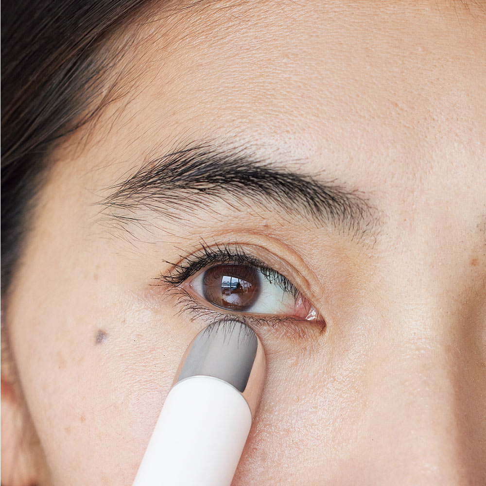 額や頬など広い部位はななめヘッド面で効率的にアプローチ。角を使えば細かい部分にもしっかりフィット!