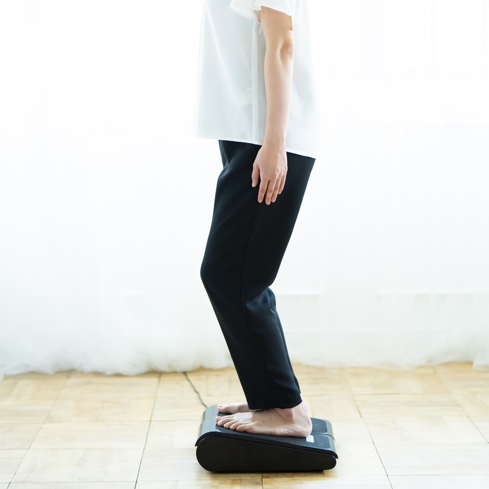 約10度の傾斜で効率的に足首とふくらはぎをストレッチ 緩やかに傾斜しているので、立つだけでふくらはぎやアキレス腱を無理なくストレッチ。ふくらはぎの柔軟性を高めることはつまずき対策にも。また。バランスを保とうと自然と背筋が伸び姿勢も整います。