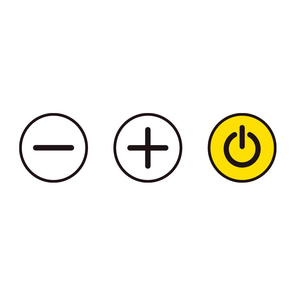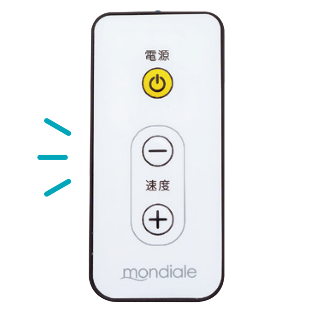 ボタン3つだけのシンプル操作 電源ボタンとスピードボタンのみのシンプルな設計。本体側面の操作ボタンまたは付属のリモコンから操作できます。