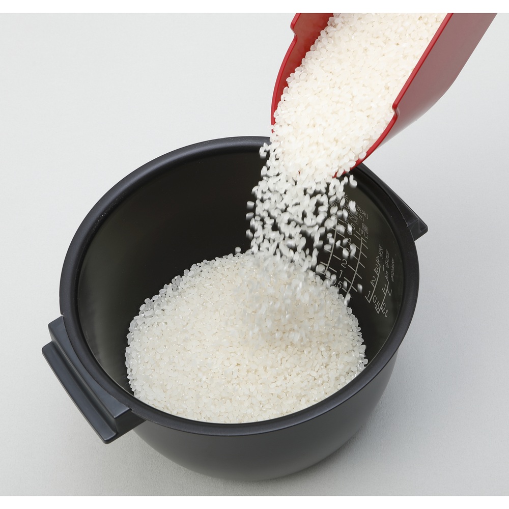 米受けの先端が尖っているため、炊飯釜に投入する際もこぼれにくい形状になっています