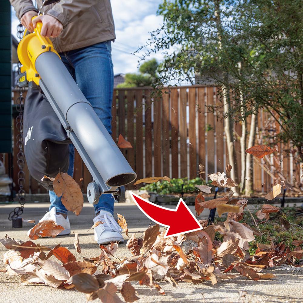 落ち葉を「吹く・吸う」の二刀流。ワンタッチでバキューム(吸引)とブロア(吹き飛ばし)の切替ができる充電式ブロワバキューム。掃いても掃いてもキリがない落ち葉掃除の強力な助っ人。ハイパワーで吹き飛ばして1ヵ所に集め、グングン吸い込んで内部で粉砕。ゴミがかさばらず処理がラクに!吸い込んだ枯葉を体積7分の1まで粉砕落ち葉粉砕機能つき。内部のシュレッダー刃で吸い込んだ枯葉を体積7分の1まで粉砕します。コンパクトにまとめて処理ができます。充電式だからコードレスでどこでも使えて取り回し抜群パワフルな40Vリチウムイオンバッテリー搭載。玄関回り、通路、駐車場、芝生、砂利、荷台の掃除に、持ち運びやすさがうれしい!※交換バッテリーは関連商品よりお求めください。