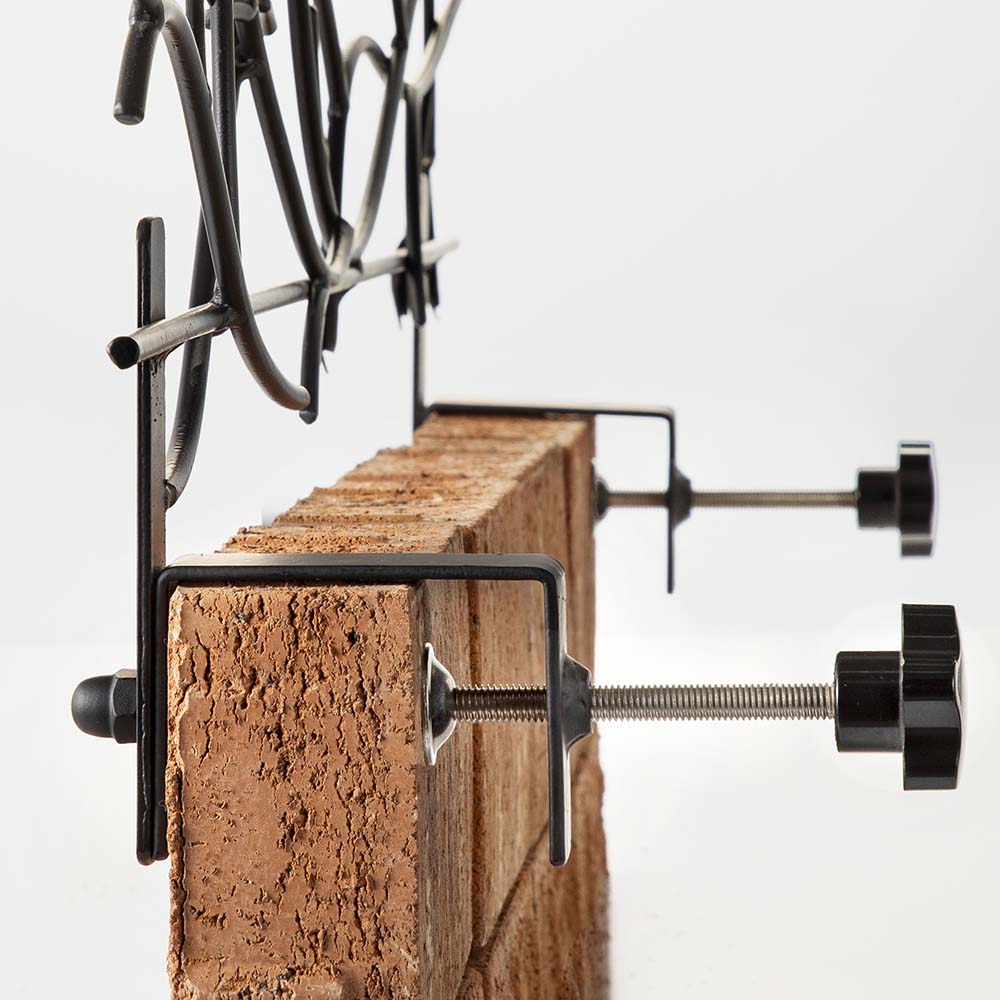 設置は簡単、長短2種のクランプを塀の幅に合わせて選び、フェンスを固定するだけ。