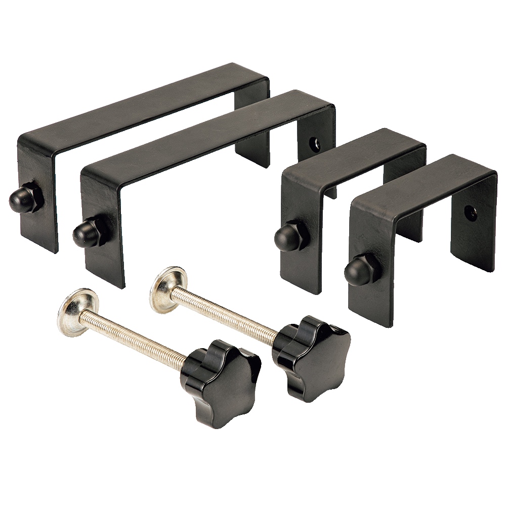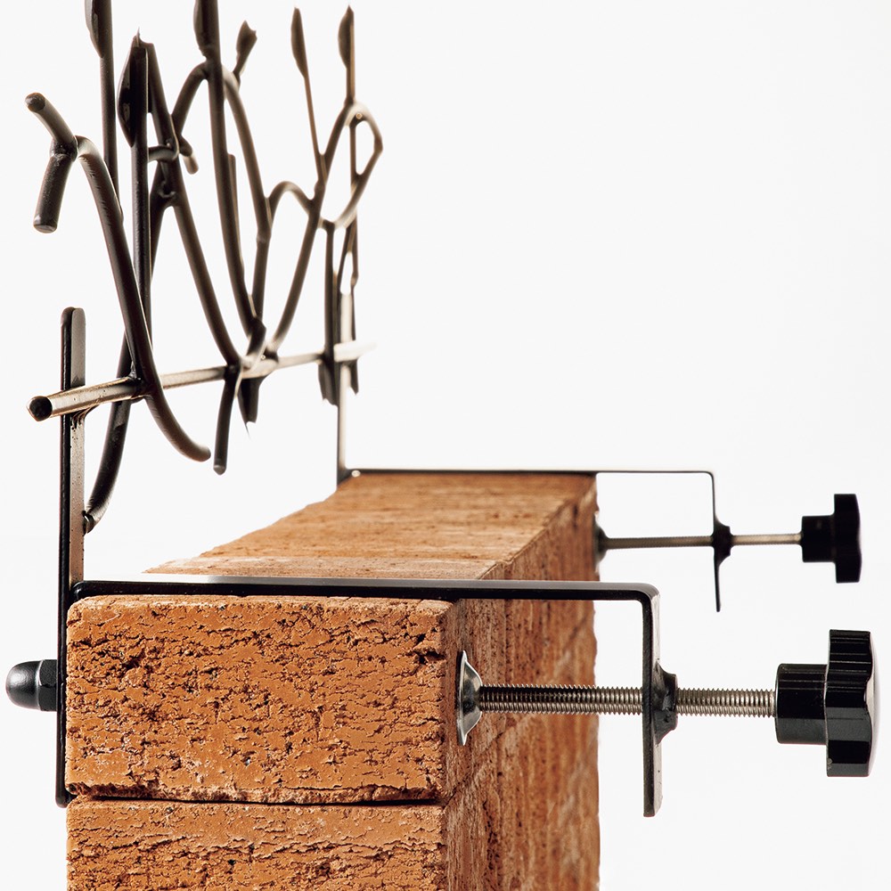 設置は簡単、長短2種のクランプを塀の幅に合わせて選び、フェンスを固定するだけ。