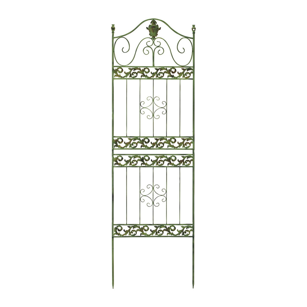 ※スチール製品は素材の特性上、経年変化でサビが発生致します。長くお使い頂くために、お届け直後の錆止め材の塗布をお薦めしております。 また、ご使用開始後も定期的なお手入れをお薦めします。(お手入れ方法&取り付け方法)深みのあるグリーン、マットな質感のホワイトの鋳物をアンティーク調のサビ風加工仕上げ。立体的なモチーフが、荘厳なイメージでお庭を彩ります。◆重厚感あるスチールにアンティーク加工を施したフェンスは、イングリッシュ風ガーデンにもしっくりなじみます。◆フェンス先端と中央部にしつらえた鋳物の装飾が、フランスの古城をイメージさせるデザイン。◆並べて使用すればお隣との境界、お庭を仕切るガーデンフェンス風に使えます。◆バラやクレマチスなどの繊細なツル性植物と合わせれば、荘厳な表情に。◆オフシーズンの植物の少ない時期のお庭にも雰囲気のある賑わいを添えてくれます。【フェンス・トレリス】お隣との境界やお庭を仕切るガーデンフェンスとしてはもちろん、つる性の植物を這わせてトレリスとしての使い方もおすすめ。デコラティブなデザインのフェンスは、オフシーズンのお庭にも賑わいを添えてくれます。