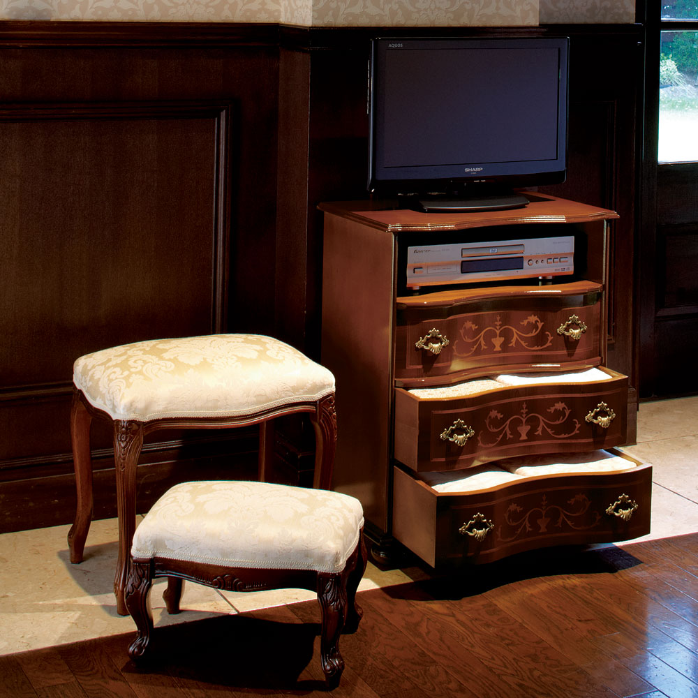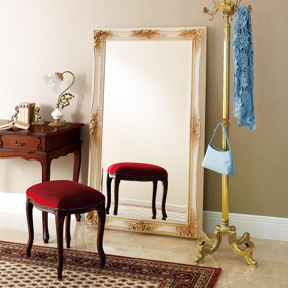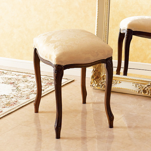 イタリア家具のクラシカルなデザインが魅力の猫脚スツール。ダイニングの補助椅子や玄関ベンチとしても。ヨーロッパ家具の職人が丁寧に仕上げたイタリア家具です。イタリア現地職人による伝統の技が息づく、イタリアの様式美◆イタリアの家具メーカーで長年修行を積んだ熟練の職人たちが昔ながらの技法を駆使し、丹精込めて仕上げました。◆脚部は優美で流れるようなフォルムの猫脚形状。贅沢で風格漂うヨーロピアンデザインです。◆脚部・フレーム部は飴色に輝くブラウン塗装仕上げ。使いこむ程に味わいが出て、長年に渡ってお楽しみいただけます。フレームに施された彫刻や優美なネコ脚はイタリア製ならでは。◆古い歴史と伝統を受け継ぐイタリア職人が丹精こめて作り上げたスツール。◆ちょっとした腰掛やソファなどのサイドチェア、簡易的なダイニングチェアとして多目的に使えるイタリア家具です。(ア)ベージュ(柄あり)光沢感のある糸で繊細な柄を表現した、クラシカルな張地を使用。(イ)レッド(無地)独特の光沢感があり、やわらかな肌触りのモケット生地を使用。※フレームと張り地の境目の装飾が(ア)レース調リボン、(イ)鋲と異なります。〜アンティーク家具の特集はこちら〜アンティーク家具の世界