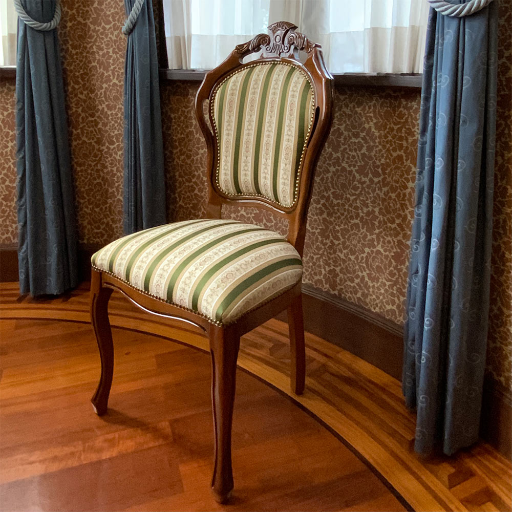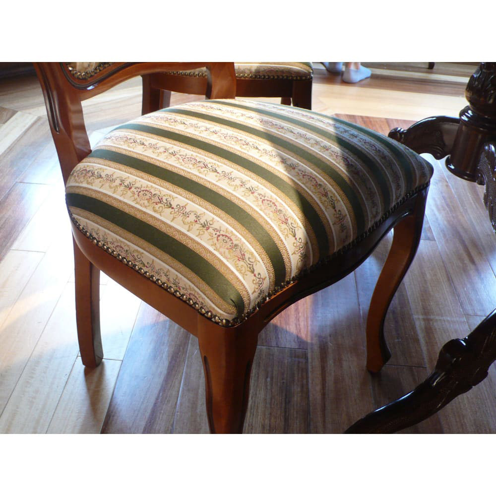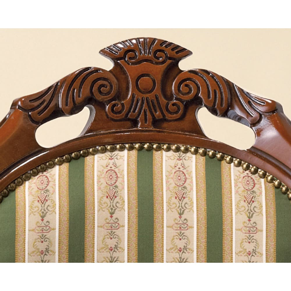 クラシック家具の象徴となるイタリアンダイニングチェア。人気のグリーンのストライプ柄で、クラシックやモダン、アンティーク家具とのコーディネートでお部屋を彩ります。単品よりお買い得な2脚セットです。〜伝統の技が息づく、イタリアのアンティーク風様式美をあなたに〜◆イタリアの家具メーカーで長年修行を積んだ熟練の職人たちが昔ながらの技法を駆使した伝統のクラシック家具。◆洗練されたファブリックは格式の高いグリーンストライプ模様です。◆美しい彫刻が掘り込まれた背もたれと曲線が美しい猫足のダイニングチェアは人気の逸品です。◆伝統の息づくおしゃれなデザインはリビングでもコーディネートして使えます。◆お部屋のコーディネートを優雅に彩るクラシック家具で外国暮らしの様な優雅な日常を醸し出します。◆単品でのご購入よりお買い得な、2脚セットでお届けします。〜本物志向のあなたに送る匠の逸品をお楽しみください〜◆古くから腕利き職人が集まる地域で作られたイタリアン家具はディノスの人気商品です。◆手間を惜しまずひとつずつ、職人が丁寧に仕上げました。◆ヨーロッパ家具やアンティーク家具とのコーディネートでお部屋の雰囲気もヨーロピアンに。◆完成品でお届けしますので届いたその日からすぐにお使いになれます。◆チェア内部にもコイルスプリングを採用しているので、座り心地もしっかりとしています。◆ディノスが自信を持ってお勧めするクラシック家具・輸入インテリアをお楽しみください。〜アンティーク家具の特集はこちら〜アンティーク家具の世界