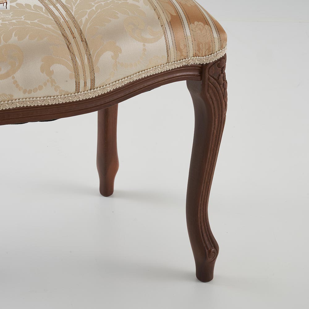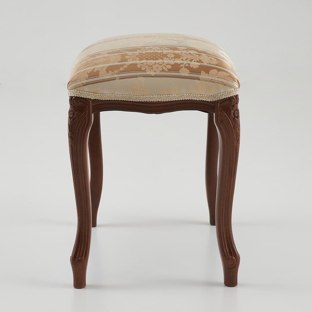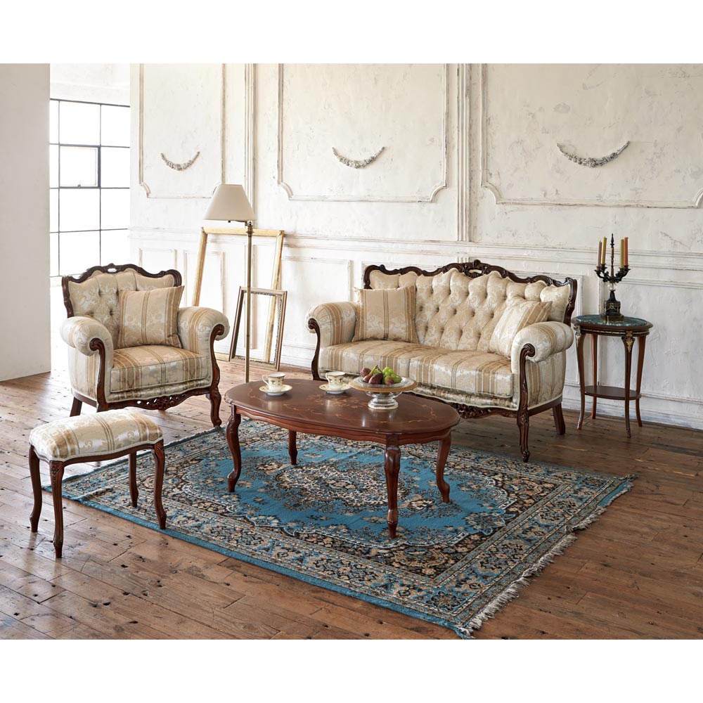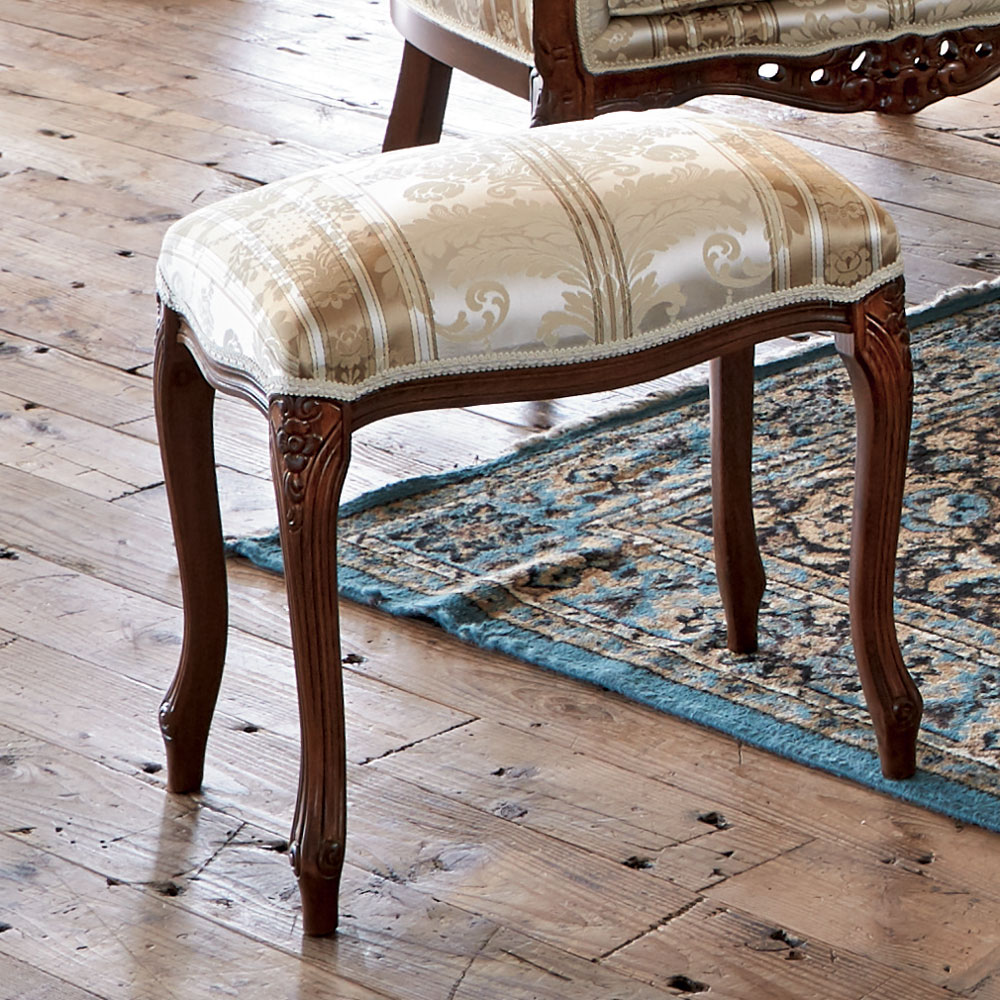 金華山織りのしっとりした手触りと愛らしい猫脚、クラシックな彫刻に象徴されるヨーロッパデザインが魅力の華やかなスツール。ふっくらとしたボリュームと立体感のあるイタリアンファブリックの豊かな表情で、お部屋に高級感を添える人気のイタリア家具シリーズです。置くだけでお部屋の主役になる美しさで、リビングルームやゲストルーム、書斎や玄関先にもおすすめで、オットマンとしても使用できます。〜イタリアの職人の丹精が込められた、風格漂うヨーロピアンデザイン〜◆手彫りの繊細なアンティーク彫刻が、フレーム部分や脚部全体に施されています。◆フレームと脚部は飴色に輝くブラウン塗装仕上げ。使いこむ程に味わいが出て長年に渡ってその表情をお楽しみいただけます。◆優美でエレガントな印象を与える曲線美が魅力の猫脚デザイン。◆映画のインテリアに出てくるような人気のソファはお部屋のコーディネートを優雅でラグジュアリーに演出します。〜しっとりと上質な金華山織のイタリアンファブリック〜◆金華山織(きんかざんおり)とは?緯(よこ)糸に金糸銀糸を織り込んで模様を織り出す織り方。帯地などの西陣織に用いられることが多い高級毛織物です。◆花が美しく咲き誇り、草木が伸びやかに描かれた艶やかで高級感のある人気のデザイン。◆模様は立体感のある起毛仕上げになっており、しっとりとしたやわらかな手触りが特徴です。◆裏面も金華山織りの張り地を使用し、どの方向から見ても美しい仕上がりになっています。〜商品担当者からのメッセージ〜古くから腕利き職人が集まる地域で作られたイタリアン家具はディノスの人気商品です。上質で洗練された外国のようなクラシック家具インテリアが、届いたその日に実現します。ヨーロッパ家具やアンティーク家具とのコーディネートで、海外インテリアのようなおしゃれで素敵なお部屋の雰囲気に。家族のだんらんのひと時にも、お客様のおもてなしのシーンにもおすすめです。ディノスが自信を持ってお勧めするクラシック家具・輸入インテリアで贅沢なくつろぎの時間をお楽しみください。〜アンティーク家具の特集はこちら〜アンティーク家具の世界
