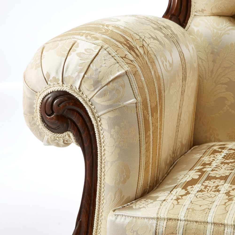光沢のあるストライプ地に植物柄を織り込んだしっかりした張り地。