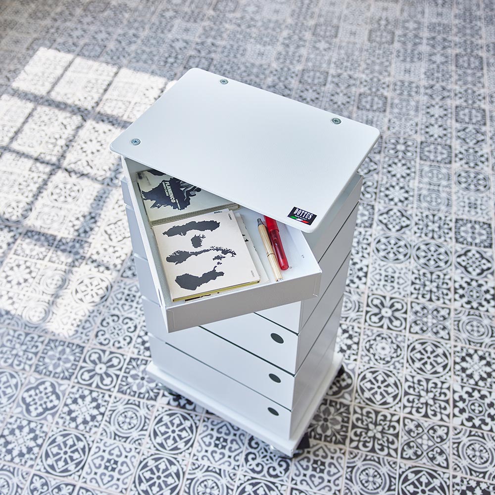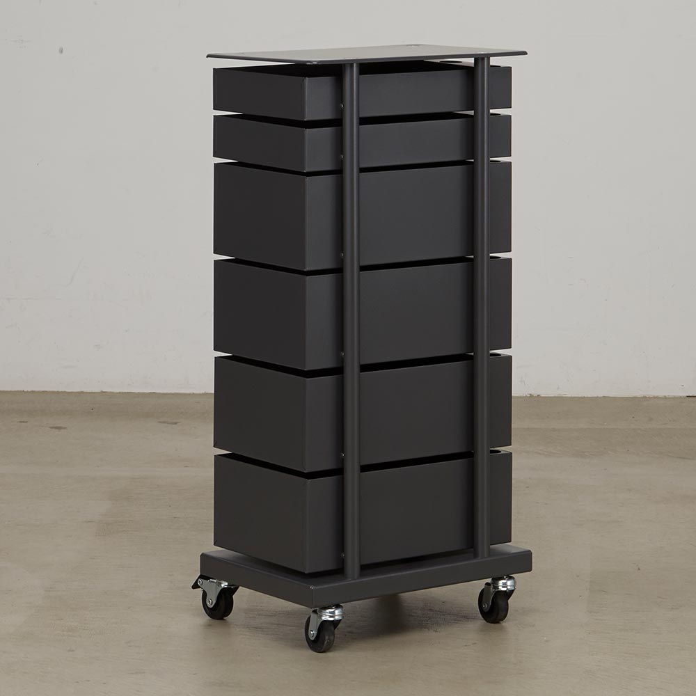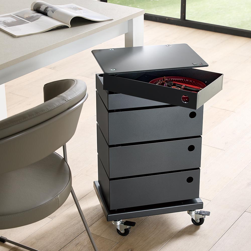 リビングやダイニングでごちゃっとしやすい机の上のものたちをまとめて収納。シンプルな見た目ながらも使う場所や入れるものを問わない便利なワゴン。ダイニングやデスクサイドでテレワークのして使えるキャスタ付きワゴンです。ぐるりと回転するトレイで探しやすく出しやすい◆仕事をしているとつい色々なものを出してしまい、机の上は散らかってしまいがち。◆そんな方におすすめのかっこいいおしゃれなキャスターつきワゴンのご紹介です。◆書類やコード類、文房具など在宅ワークなどで必要なものを簡単にひとまとめにできます。◆ぐるりと回転するトレイでどこからでも開閉・物の取り出しが出来る便利なキャスター付きのワゴン収納。◆トレイの穴に指をかけてぐるりと横に回して開閉してください。おうちで快適なテレワークの環境を整えるのにぴおすすめ◆ダイニングでテレワークをすることが多い方にもおすすめです。◆トレイはA4サイズの用紙がぴったり入るサイズ。書類を分けて収納しておくのに便利なサイズです。◆細かく収納ができるので細々としたものを分類収納しやすく、出しやすいデザイン。◆閉じた状態では取っ手が出ていないのですっきりとした見た目です。置く場所を選ばない可動式ワゴンなので様々な場所で活躍◆キャスター付きが付いている可動式ワゴン。◆4つのキャスターで必要な場所にスムーズに移動させられます。◆キャスターはストッパー付き(2箇所)なので必要に応じてとめられます。◆省スペースでおいて置けるので邪魔になりにくいのもうれしいスリムでコンパクトなワゴンです。色々な使い方ができるシンプルでおしゃれなワゴンです◆お部屋のインテリアの雰囲気を崩さないシンプルな見た目なので置く場所を選びません。◆書斎や学習机のワゴンとしてはもちろん、リビングにも置きやすいDOTTUS(ドッタス)社1991年現CEO、 ダリオ・パリソットによってイタリア北東部ヴィセンツア郊外にDOTTUS(ドッタス)社は設立されました。ドッタス社は、スチール製家具メーカーとしてオリジナルデザインの収納・デイスプレイケースなどを制作するイタリアを代表する企業の一社です。