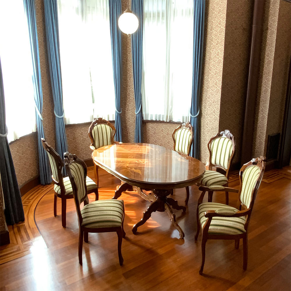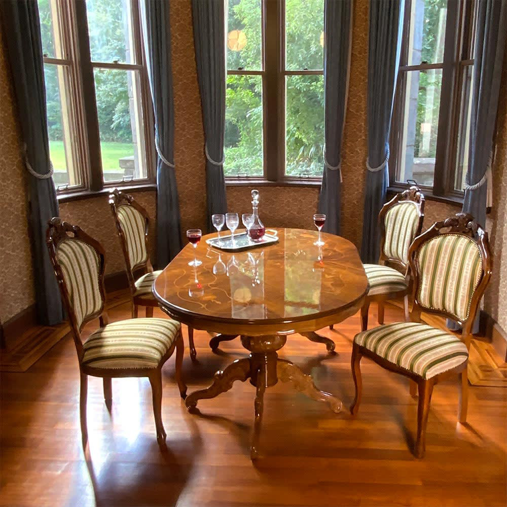 シリーズ品のチェアと合わせると一層華やかなコーディネートになりおすすめです。 ※お届けはオーバルダイニングテーブルです。