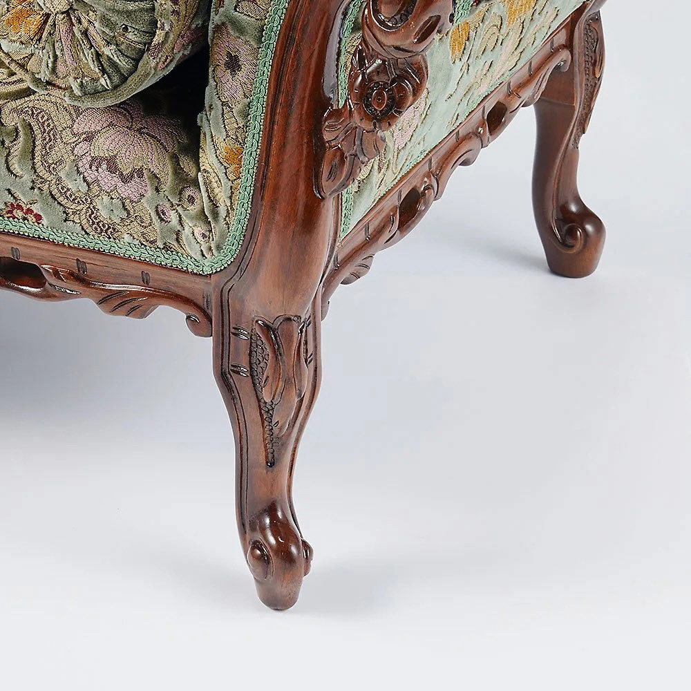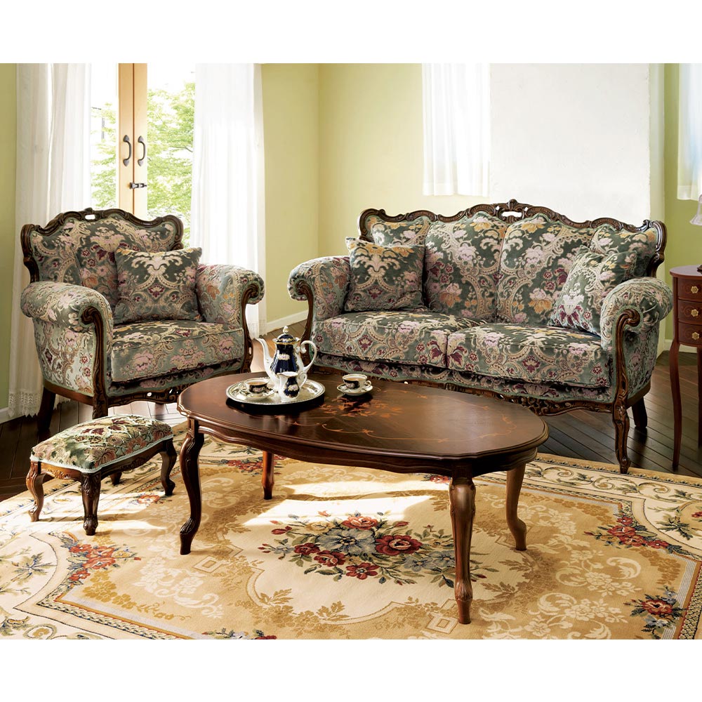 贅を尽くしたイタリアン家具が至福のひとときをもたらして。金華山織とクラシックな彫刻に彩られたソファは、置くだけで空間の主役になる美しさ。〜イタリアの職人の丹精が込められた、風格漂うヨーロピアンデザイン〜◆手彫りの繊細なアンティーク彫刻が、フレーム部分や脚部全体に施されています。◆フレームと脚部は飴色に輝くブラウン塗装仕上げ。使いこむ程に味わいが出て長年に渡ってその表情をお楽しみいただけます。◆優美でエレガントな印象を与える曲線美が魅力の猫脚デザイン。◆映画のインテリアに出てくるような人気のソファはお部屋のコーディネートを優雅でラグジュアリーに演出します。〜しっとりと上質な金華山織のイタリアンファブリック〜◆金華山織(きんかざんおり)とは?緯(よこ)糸に金糸銀糸を織り込んで模様を織り出す織り方。帯地などの西陣織に用いられることが多い高級毛織物です。◆花が美しく咲き誇り、草木が伸びやかに描かれた艶やかで高級感のある人気のデザイン。◆模様は立体感のある起毛仕上げになっており、しっとりとしたやわらかな手触りが特徴です。◆裏面も金華山織りの張り地を使用し、どの方向から見ても美しい仕上がりになっています。〜アンティーク家具の特集はこちら〜アンティーク家具の世界