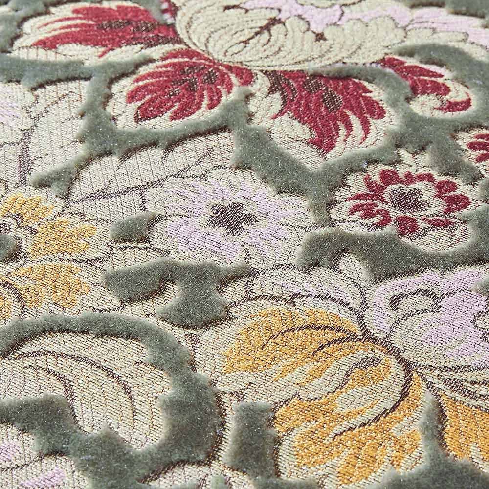ビロードの模様を金糸、銀糸で織り出す「金華山織」。そのあでやかな美しさで、西陣織の帯などにも用いられる高級毛織物です。