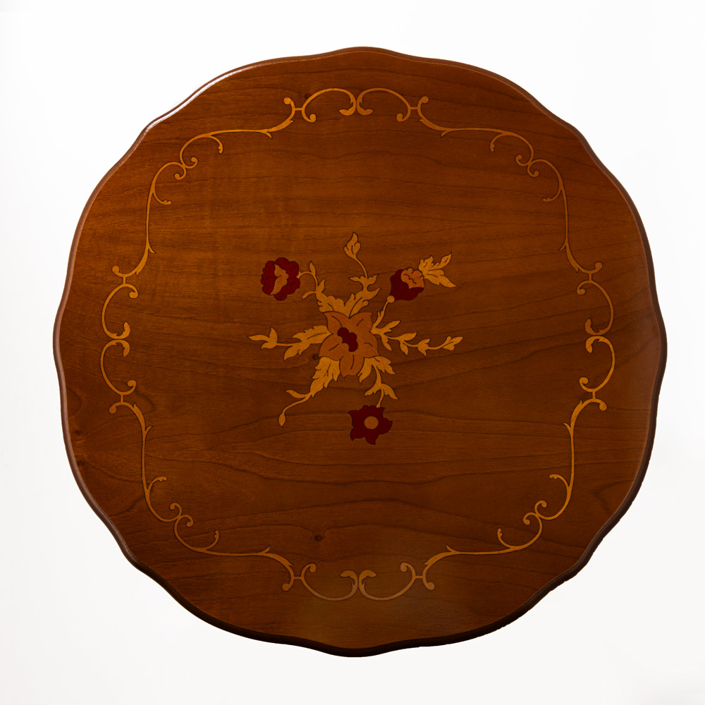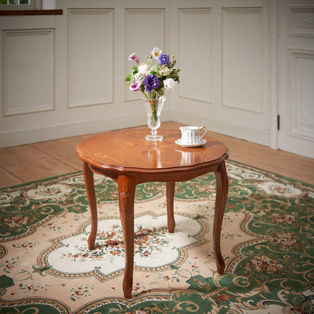 ヨーロッパの職人が現代に受け継いでいる、精緻な技と美の結晶の象がん細工を施した、格調高いリビング丸テーブル。ティーテーブルやサイドテーブルとして活躍するほどよいサイズで、流麗なフォルムが海外のような高級感あるインテリアを演出します。イタリア現地職人による伝統の技が息づく、イタリアの様式美◆イタリアの家具メーカーで長年修行を積んだ熟練の職人たちが昔ながらの技法を駆使し、丹精込めて仕上げたリビング丸テーブルです。◆テーブル全体に象がん細工を施した贅沢で風格漂うヨーロピアンデザイン。◆細やかな模様をひとつひとつ切り出したところへ色合いの違う木材をはめ込んで磨きをかけています。◆飴色に輝くブラウン塗装仕上げは使いこむ程に味わいが出て、長年に渡ってお楽しみいただけます。◆クラシカルなデザイン性と機能性を融合させた、人気のクラシック家具です。◆映画のインテリアに出てくるようなデザインの、人気のイタリア製テーブルが、お部屋のコーディネートを優雅に演出します。◆流れるような優美なフォルムの脚部デザインは、重厚でしっかりと安定感があります。◆ティーテーブルやサイドテーブルとして活躍するほどよいサイズで、家族やお客さまと和やかにすごすテーブルとしても最適です。ヨーロッパの職人たちが現代に受け継いできた象がん細工◆象がんとは、異なる素材を組み合わせて花柄などの紋様を表現する伝統技法。◆使用される素材も天然木を使用するため、1点1点職人が素材と対話し、その味わいを最大限に引き出せる風合いに仕上げております。◆手作業で仕上げているため、板にあらわれる象がん模様は、カタログや写真と色や柄の色味や風合いが多少異なる場合がございます。◆家具1点1点に込められた、あたたかみのある表情をお楽しみください。◆美しく精緻な模様が天板全体にはめ込まれているのでリビングが華やかな雰囲気に。◆イタリアならではの光沢塗装仕上げは、さらに象がんの美しさを際立たせます。◆脚部にも手作業で彫られた、美しい装飾が施されています。商品担当者からのメッセージ古くから腕利き職人が集まる地域で作られたイタリアン家具はディノスの人気商品です。ヨーロッパ家具やアンティーク家具とのコーディネートで、海外インテリアのようなおしゃれで素敵なお部屋の雰囲気に。届いたその日からご使用いただける完成品なのも魅力のひとつです。ディノスが自信を持ってお勧めするクラシック家具・輸入インテリアをお楽しみください。〜アンティーク家具の特集はこちら〜アンティーク家具の世界
