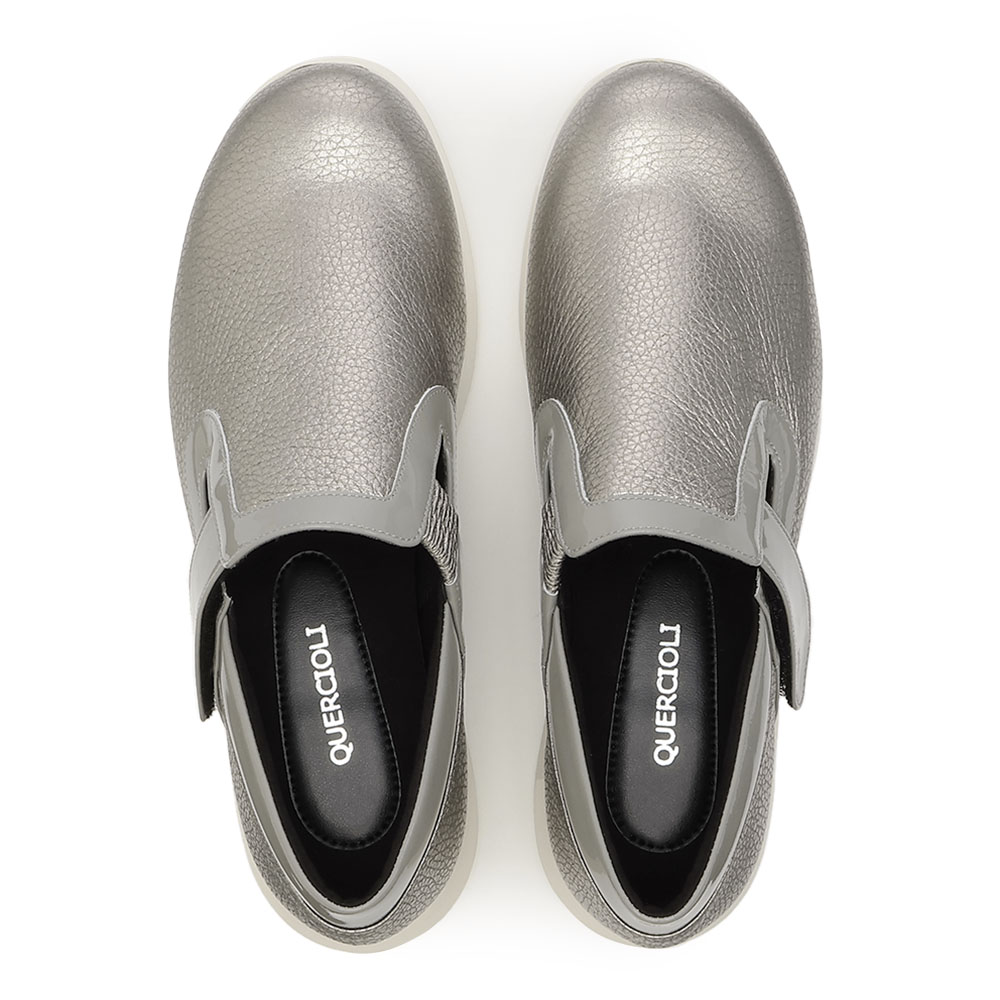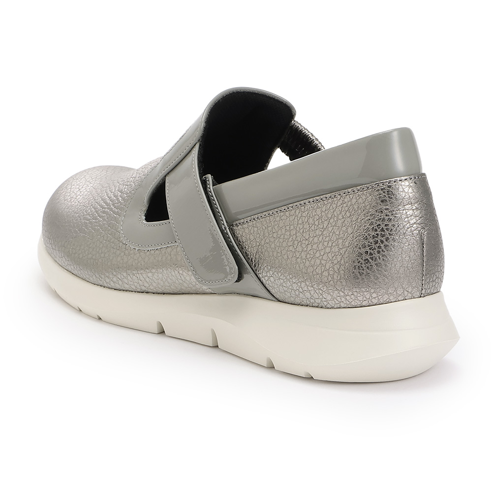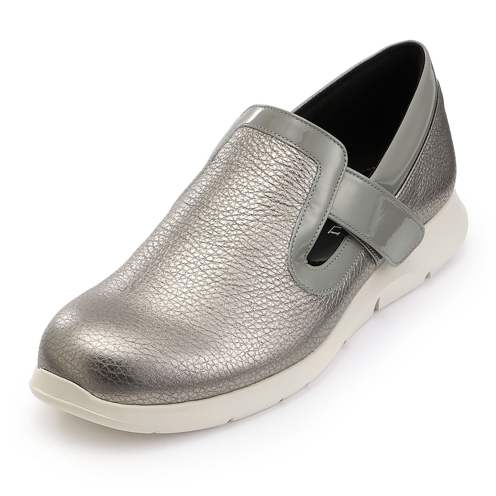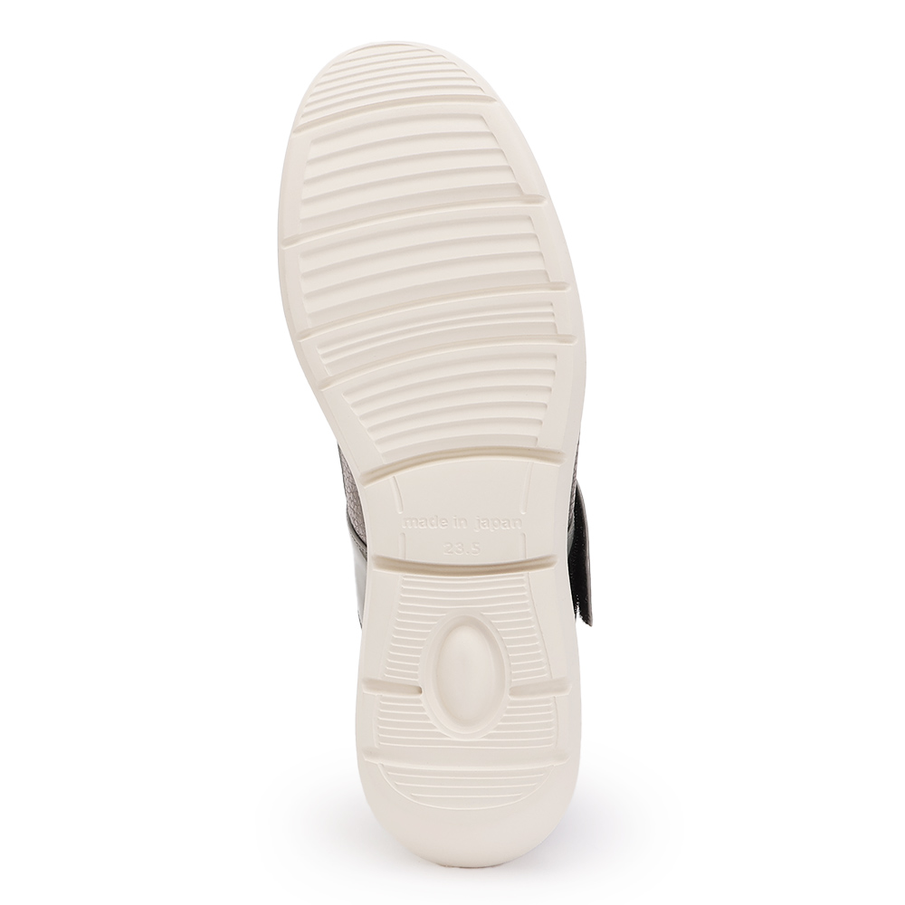 “旬”を盛り込んだ秋の小物今っぽさを手軽に楽しめるのはもちろん、使いやすさにも拘り抜いたアイテムのご紹介です。洒落感と快適性を両立した大人のための一足程よい光沢のシュリンク型押しレザーのアッパーに履き口は艶やかなエナメルレザーを組み合わせたクラス感のあるスリッポン。着脱しやすさを考慮してベルトは面テープ仕様、内側には隠しゴムを配しました。足なじみのよさや軽い履き心地も魅力。