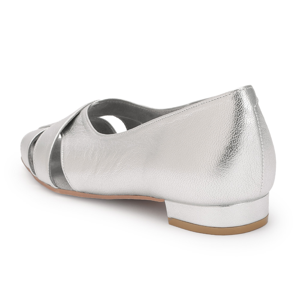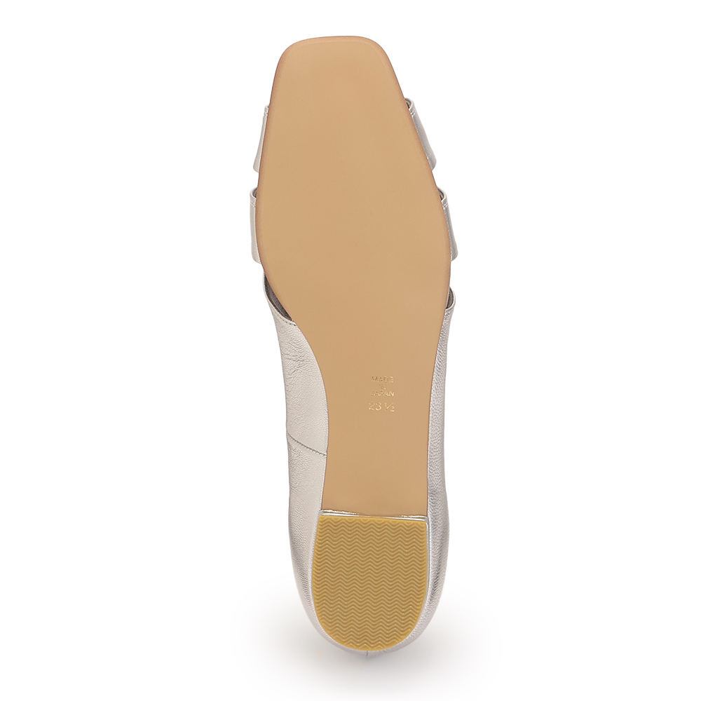 踏み出す一歩にフェミニンな輝きを与えて暑さが続く端境期には、程良く抜けのあるこの一足を。柔らかなやぎ革のアッパーは優しい輝きの箔加工が施されていて、クールで品のいい肌魅せを演出します。インナーは足裏が滑りにくいスエード調素材を採用。