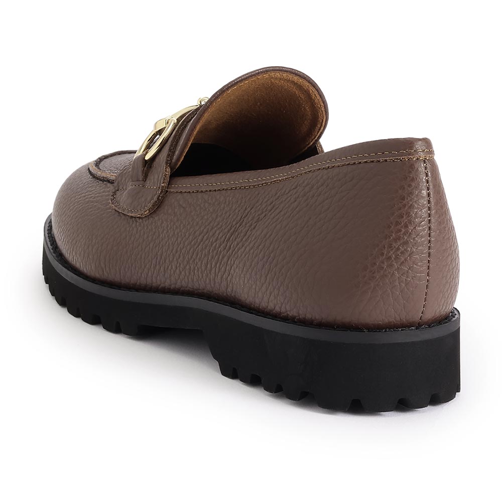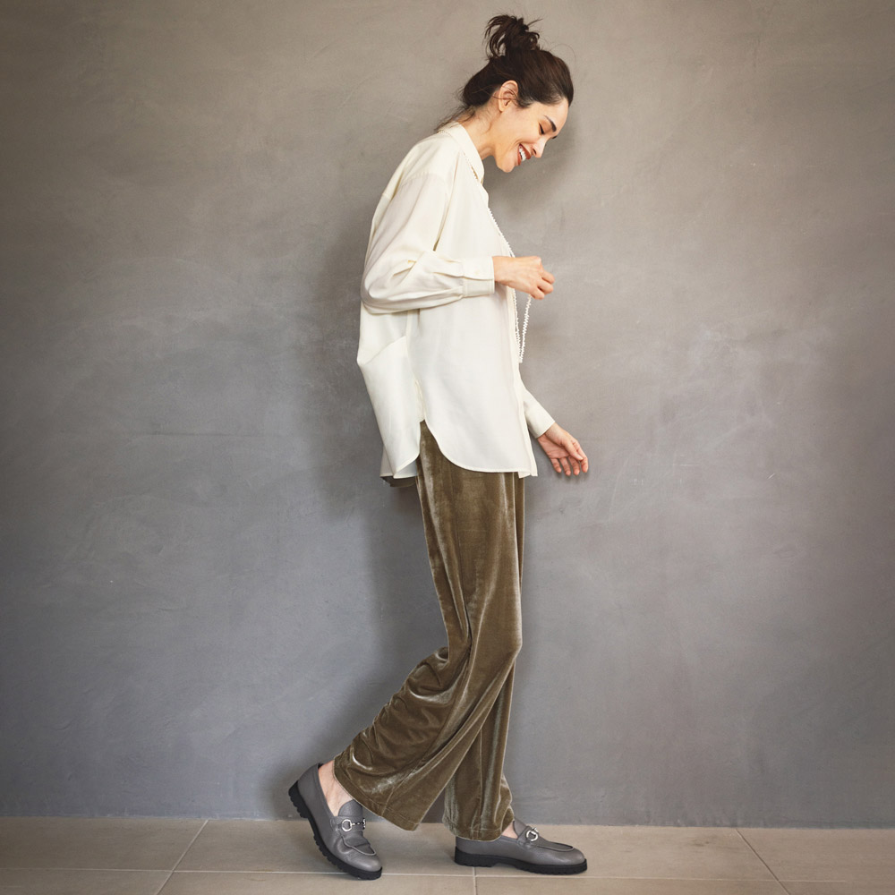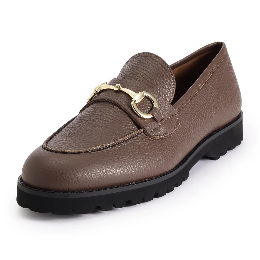 ビット金具を配したローファーは、トラッドな見た目とスニーカー感覚で履ける気楽さがポイント。本革にシュリンク型押しを施したアッパーは傷がつきにくく、つま先があたる裏側は抗菌防臭を助けるメッシュ生地を使用。中敷きの下に低反撥スポンジを仕込み、長時間履いても疲れにくい工夫にこだわりました。オールシーズン使えるニュアンスカラーです。