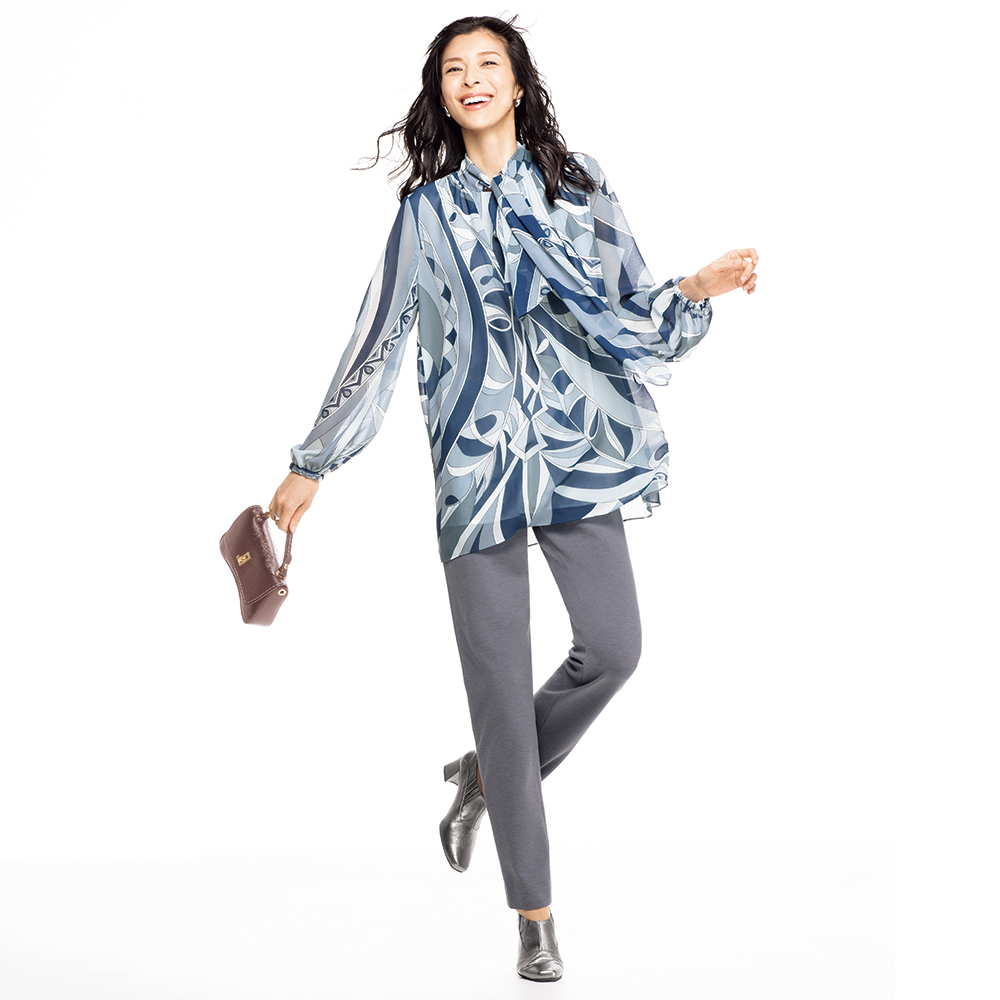 豊かな感受性に共鳴する、羨望の品格マニッシュなスタイルでフレキシブルなボトム選びスタイリッシュなフォルムと安定したブロックヒールが颯爽とした美脚を演出。機能面でも、履き口の隠しゴムが脱ぎ履きを簡易に、歩行時の負担を軽減します。
