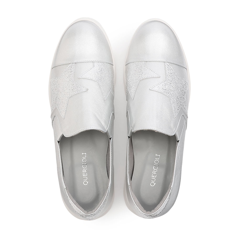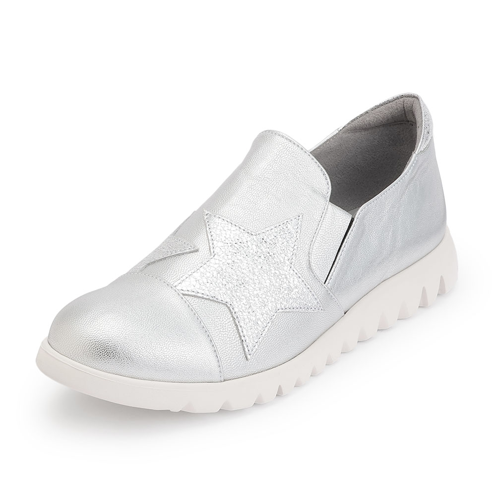 大人目線の“カジュアル”で印象をアップデートしてリュクスな素材使いや、熟練技が生み出すフォルム。大人の女性に満足していただける、新基準のカジュアルです。煌めきの相乗効果で印象をトーンアップ。上品な光沢のスリッポンは、柔らかなやぎ革に同系色の星柄箔レザーを飾り、輝きの対比で遊んだもの。インソールにはアーチドクッションを付け、履き口に隠しゴムを設けているためフィット感が上々です。