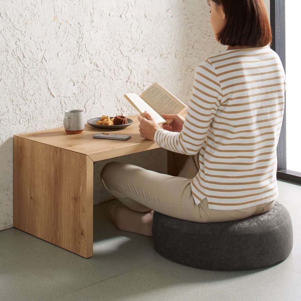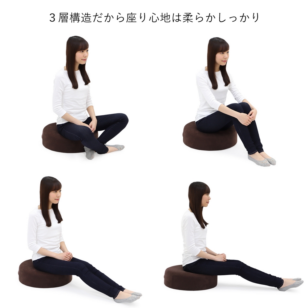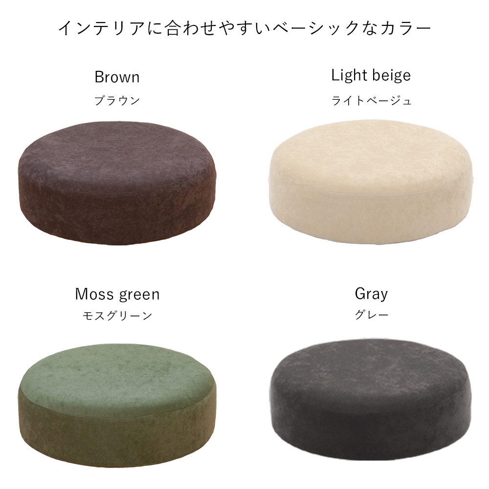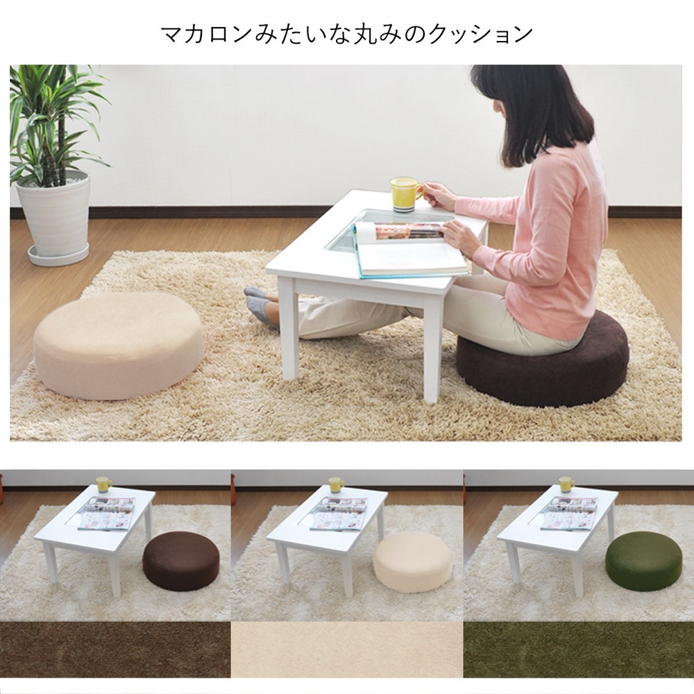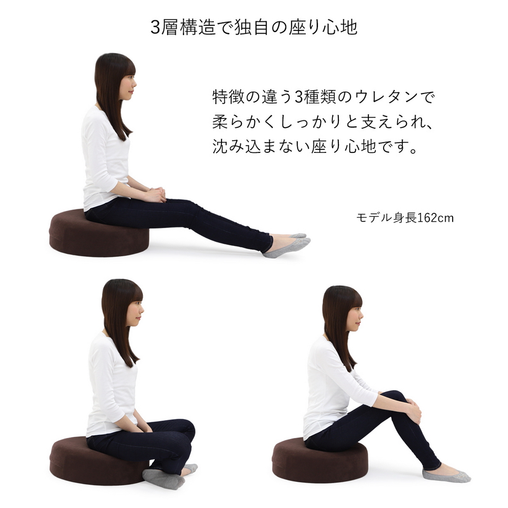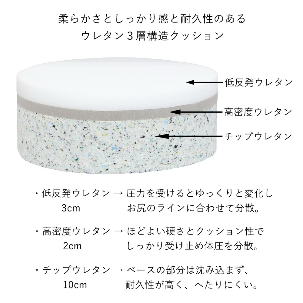 床生活を快適にするコロンとしたフロアクッション。安定感のある大きさで腰に負担がかかるあぐらも組みやすいこだわりの構造で長時間快適に。お尻に近い部分に低反発ウレタンを使い座るとジワ〜と沈み込む感覚です。テレワークやリモートワークにもおすすめです。床生活を快適にするキュートなアイテム!コロンと丸みのあるフォルムが魅力のクッションです。安定感のある大きさ・角のない丸形なので腰に負担がかかるあぐらも組みやすく長時間座っていても快適です。低反発ウレタンを使用しているので座った時にジワ〜っと沈み込む感じが◎かわいいだけでなくこだわりの構造はさすが日本製ですね!!リビングや子供部屋でももちろん、豊富なカラーバリエーションで和室にもおすすめです。●こだわりの三層構造 ◎低反発ウレタン・高密度ウレタン・耐久性の高いチップウレタンの3層構造 ◎低反発ウレタンがが体圧を心地よく分散するするのでウレタンがへたりにくい。 ◎一番下のチップウレタンが土台となり、しっかりした座り心地に。●洗えるカバーリング ◎カバーリングは洗濯機で丸洗いが可能。いつも清潔に使えます。●コロンとした丸みがかわいい ◎安定感のある丸型形状だから長時間座っていても快適。 ◎高さがあるので座椅子感覚でお座りいただけます。 ◎角のない丸形なので腰に負担がかかるあぐらも組みやすいです。●国産ウレタンフォームを使用 ◎座椅子本来の目的である身体の負担を軽減するための中心素材であるウレタンフォームは、ウレタン製造の各メーカーが持つ、それぞれに得意な材料を商品コンセプトにあわせて使い分けています。〜座椅子のマエストロが作る安心の「ジャパンメイド」〜日本人のくつろぎとリラックスを追及し続け、次々と新機能を生み出してきた、座椅子業界のパイオニア“ヤマザキ”。「座った時の腰への負担を軽減する」という、座椅子本来の機能を重視した商品作りをコンセプトに、人間工学的な見地からの設計を行っています。日本だから出来る品質管理の下で生産された精密な部品や材料を、国内工場にて独自の工程で生産している「ジャパンメイド」。そのこだわりゆえに“職人”とも称される国産座椅子メーカーです。〜ディノススタッフコメント〜自宅にソファはあるものの、いつのまにかソファからズレおちて落ち着く床生活に…ダイニングテーブルのない我が家ではリビングテーブルで食事も行います。薄いクッションだと床着き感を感じたり、沈み込みす過ぎて腰に負担がかかったり…。そんな生活の救世主がこちらでした!!コロっとした形が可愛くて気に入ったのですが、それ以上に使い心地がとてもいいのです。硬めのしっかりとした座り心地で安定感が、長時間座っていても疲れにくい。また、表面の低反発ウレタンのおかげでお尻にもやさしいです。クッションの厚みがあるので、座った時に我が家のリビングテーブルと高さがピッタリでテーブルでの食事やパソコン作業もやりやすくなりました!座椅子だと場所を取り目立ちますが、この大きさならそんなに邪魔にならないので使わない時はソファの上などに置いています。カバーも洗えるので食べこぼしなどの汚れも安心。快適な床生活をお求めの方はお勧めですよー♪