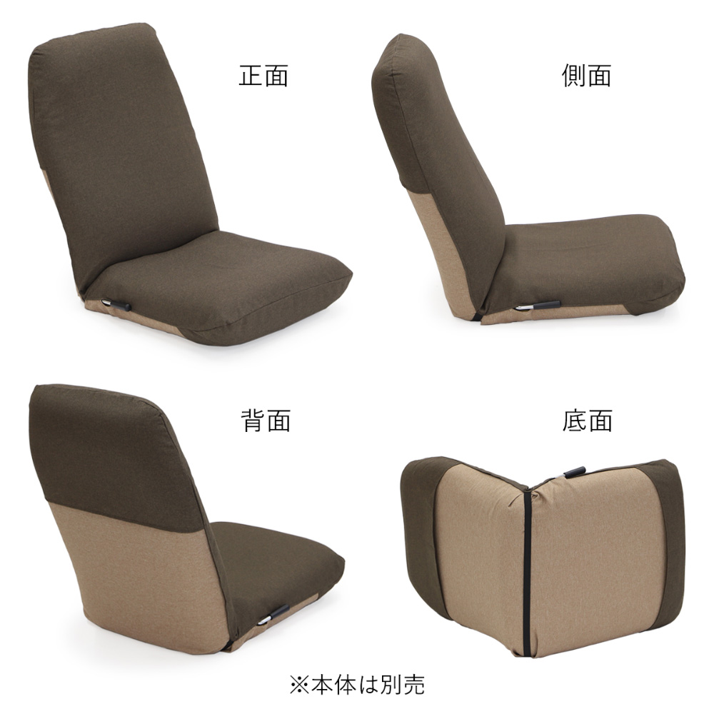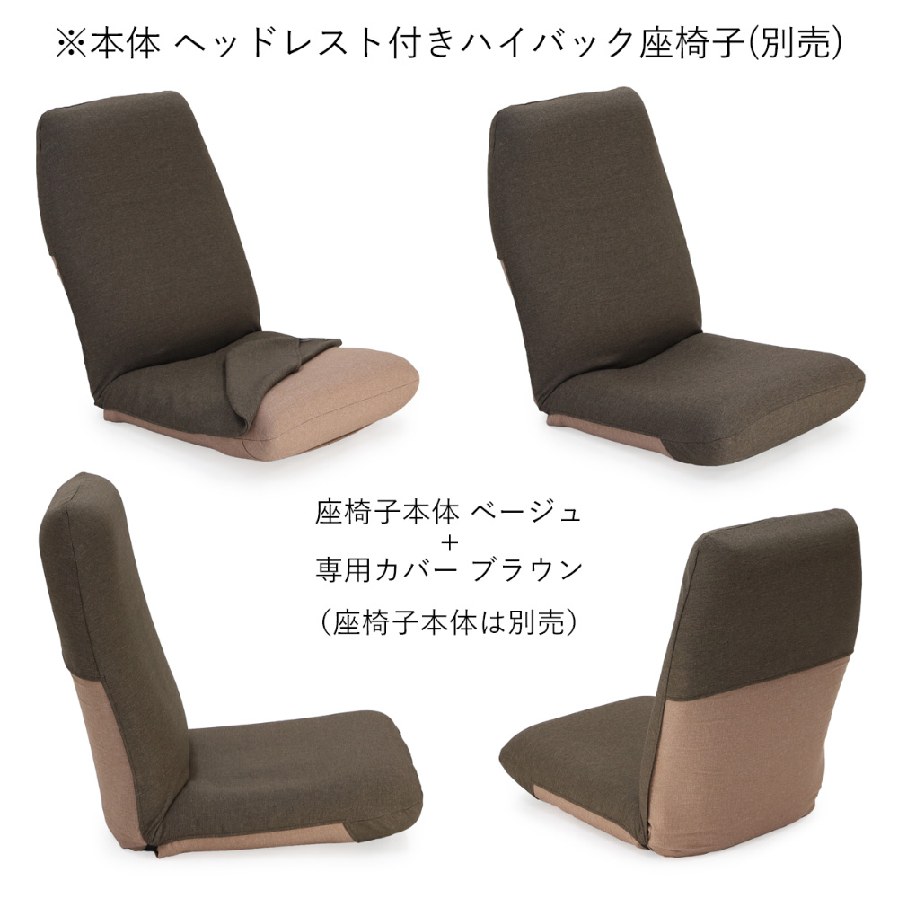 カバー取付方法 ※写真の座椅子はレバー式ですがカバーは共通。座椅子はベージュ色、カバーはブラウン色の組み合わせ例