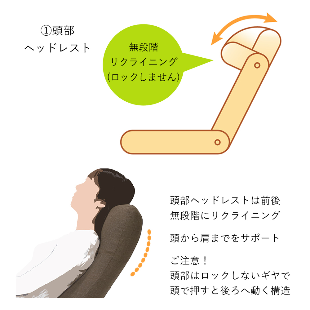 ヘッドレストの角度調節は無段階