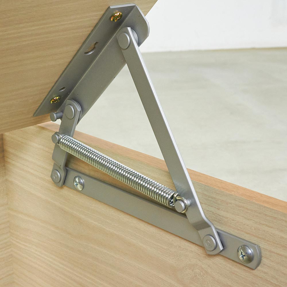 スプリング構造の金具がサポートし、軽い力で開閉できます。