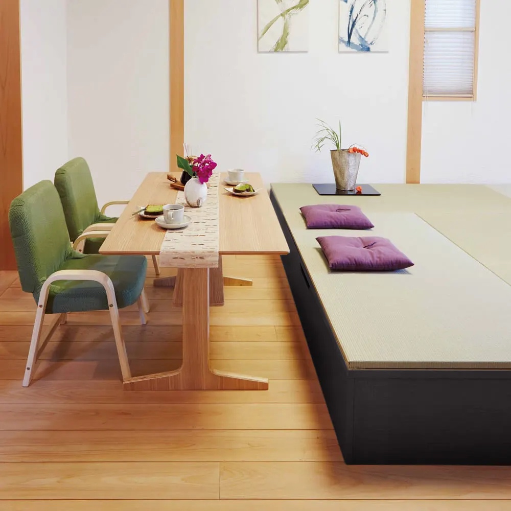 ミニマルな暮らしのお手本として注目されている和の住まいの進化形。置くだけで凛とした空間が生まれ、収納不足も解消します。(※写真はヘリ無・半畳+1畳×4・高さ45cm)
