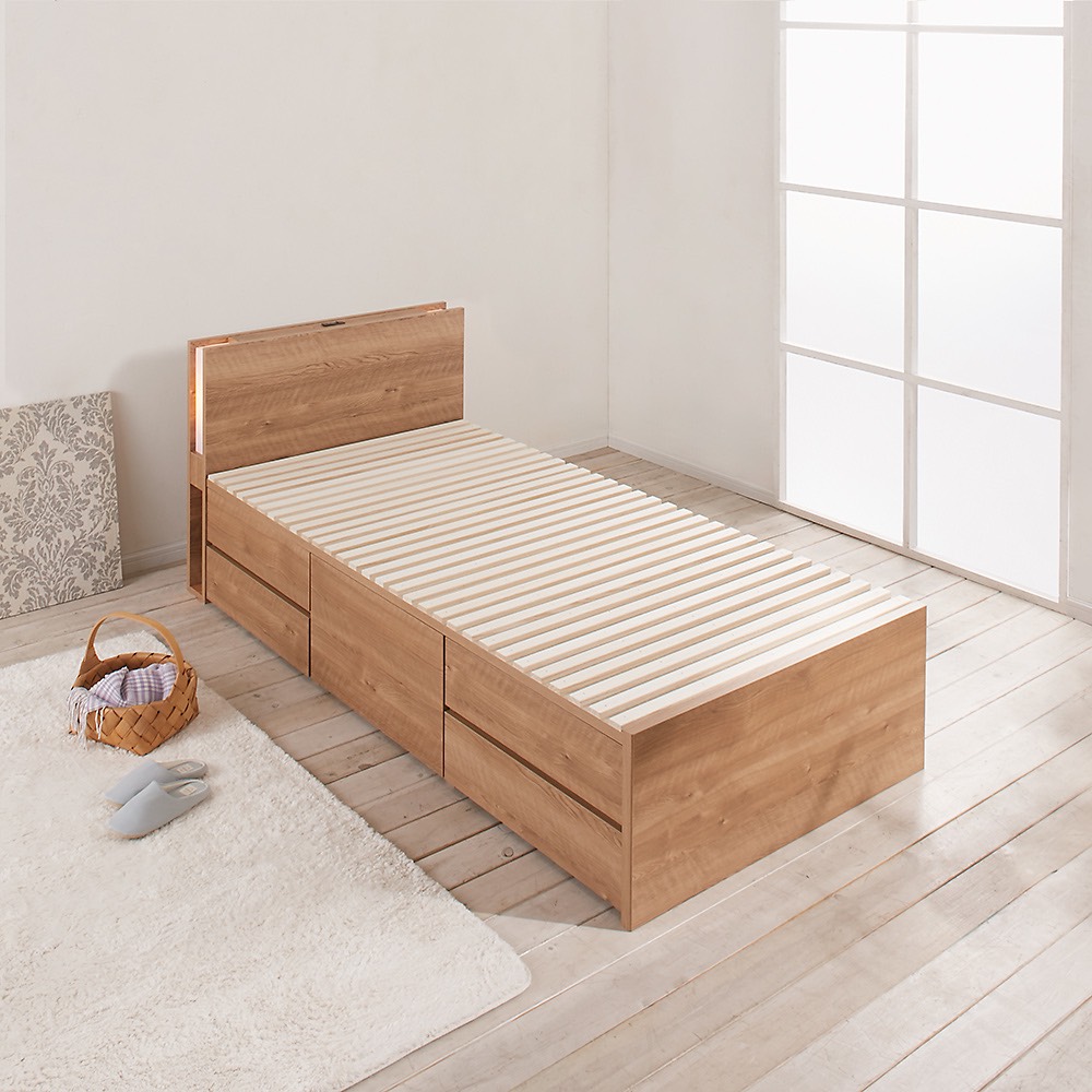 dinosがおすすめする大容量収納でお部屋が広く使えるチェストベッド。洋服をたくさんお持ちの方にクローゼットいらずな驚きの収納力。ヘッドボードはサイドにほのかな照明と収納棚付き。お部屋が広く使える国産の大量収納チェストベッド。本体・ヘッドボード・サイズ・色がお好み・お部屋のテイストに合わせて選べる120タイプ!組み合わせで120タイプから選べるから、お望みのベッドが必ず見つかるディノスがおすすめするチェストベッドです。Q.チェストベッドとは?A.タンスとベッドが一体化。最大で衣装ケース25個分(大量収納引き出しすのこタイプ・ダブルサイズ)を収納できるので場所を取らずに寝室がすっきり。Q.どうしてチェストベッドがいいの?A.収納スペースが少なかったり、タンスを置く場所がないお部屋でも、空間の有効活用ができます。ディノスのチェストベッドならお部屋や用途に合ったベッドがきっと見つかりますお洋服をたくさん持っている人におすすめ!大型引出し付のベッド何と引出し奥行き84cmで衣装ケース約12個分の収納力で衣替え知らずの大容量チェストベッド奥行84cmの引き出しで大量収納が可能。奥行き84cmの引き出しで大量の衣類がしまえ、衣替えも不要に。フルスライドレールつきで奥までスムーズに出し入れができます。※引出しは手前側に70cm引き出せます。引出しの奥行内寸は84cmです。お好みで選べるヘッドボード◆立てかけ薄型棚スマホや小物が立てかけられる便利な薄型棚。コンセント付きなので充電もばっちり。◆角が丸い薄型棚角が丸く加工されており奥行9cmの省スペース設計。コンセント付きなので充電もばっちり。◆照明・収納棚付きサイドにほのかな照明と収納棚付きの機能的なヘッドボード。収納スペースにはA4サイズの雑誌が収納できます。コンセント付きなので充電もばっちり。◆ヘッドレスタイプ省スペースにベッドを設置できるヘッドレスタイプ。お部屋に合わせて選べる3色ホワイト・ダークブラウン・ブラウン木目の3色をご用意いたしました。お部屋のインテリアや雰囲気に合わせてお選びいただけます。新生活・お引越しのタイミングに合わせてベッドフレームを見直してみませんか?タンス・チェストいらずの大型収納でお部屋がすっきり整えられます!他にも収納付きベッドを多数ご用意しています!大容量チェストベッド特集はこちらから