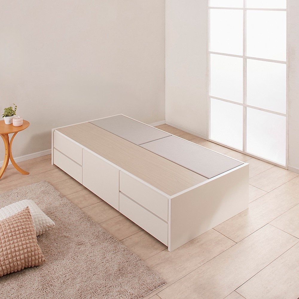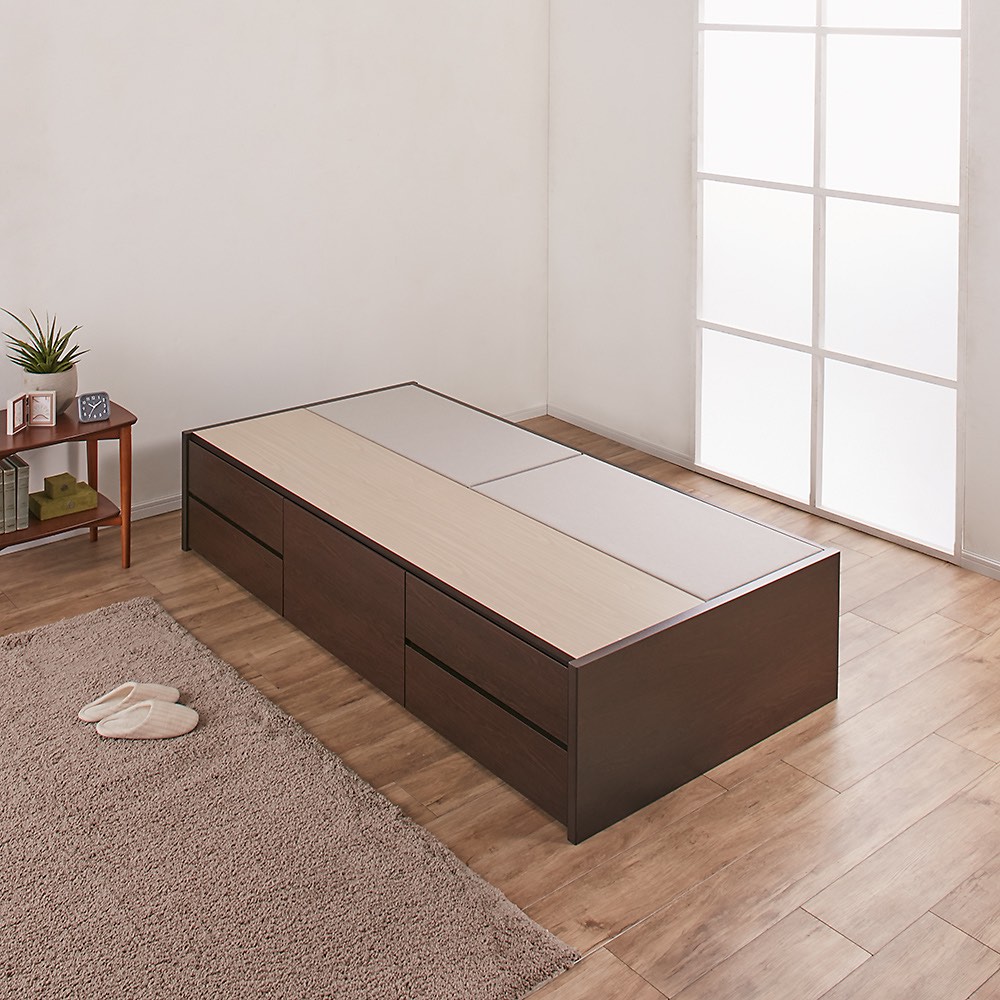 普段使いの収納も、季節ものの寝具などの収納もあきらめたくない人におすすめ!収納部分の収納力がなんと衣装ケース15個分のチェストベッド。